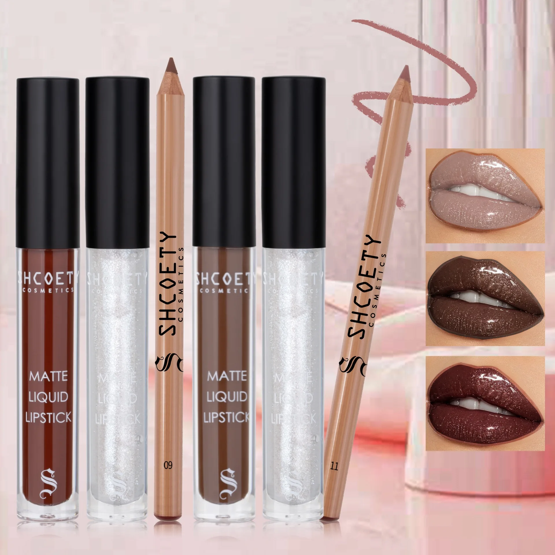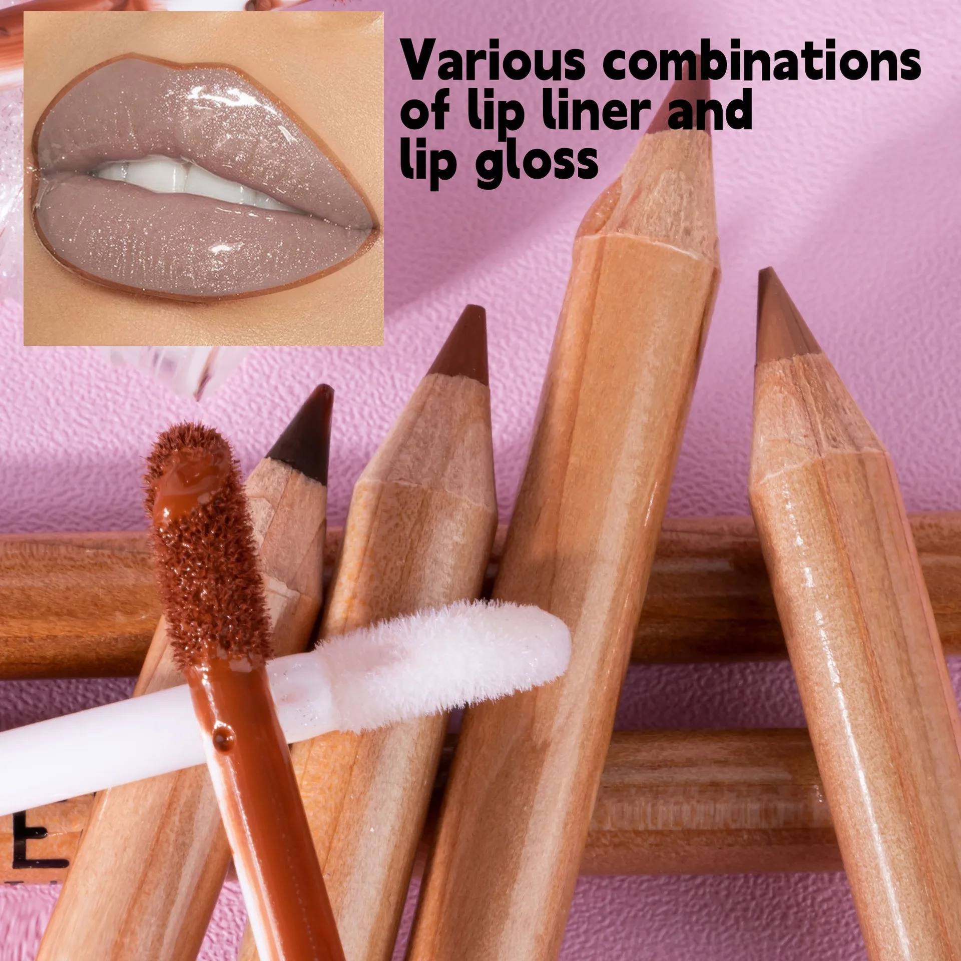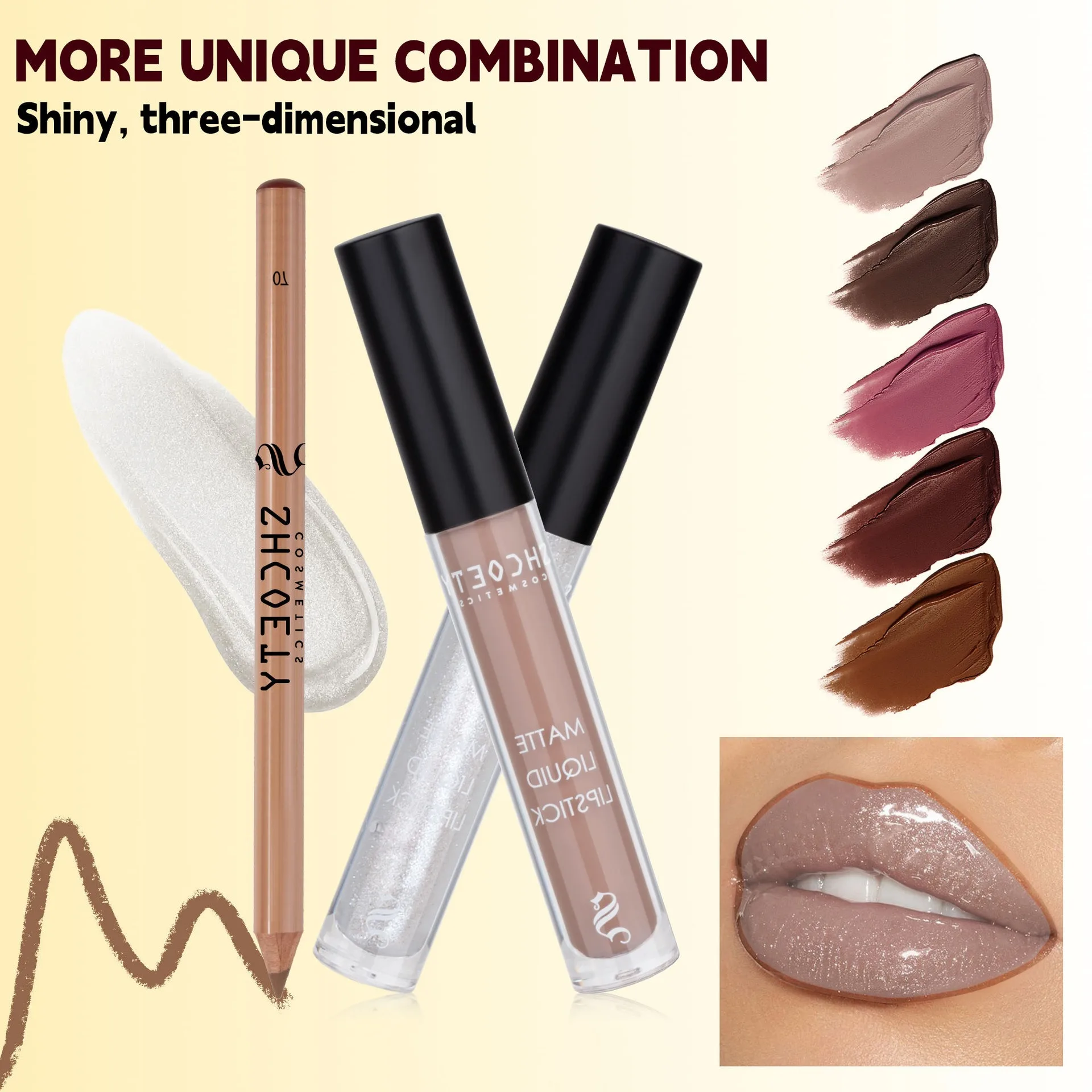 Pearlescent lip gloss, matte lip gloss, lip line, three piece set