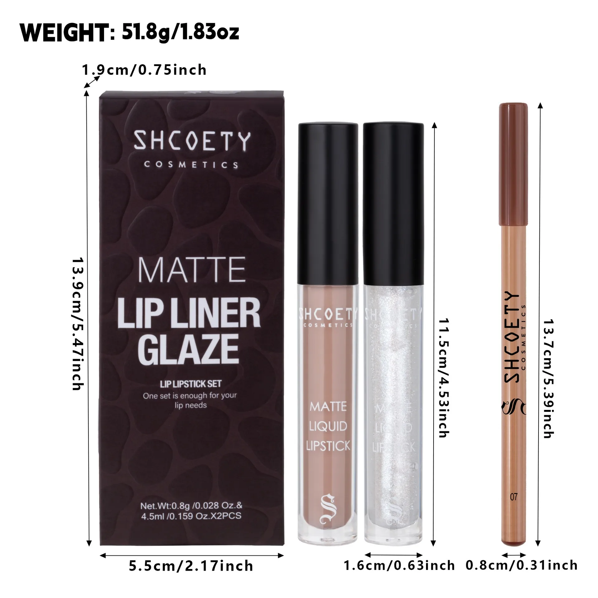 Including 1pc lip gloss, 1pc liquid lipstick, and 1pc lipliner