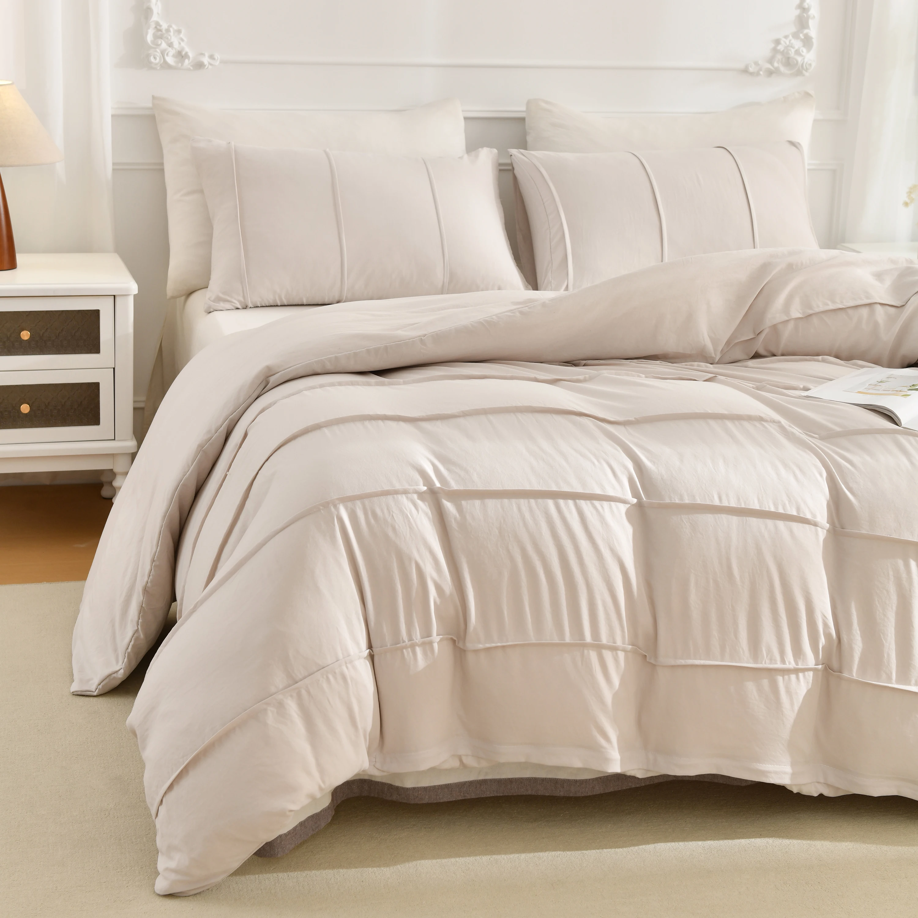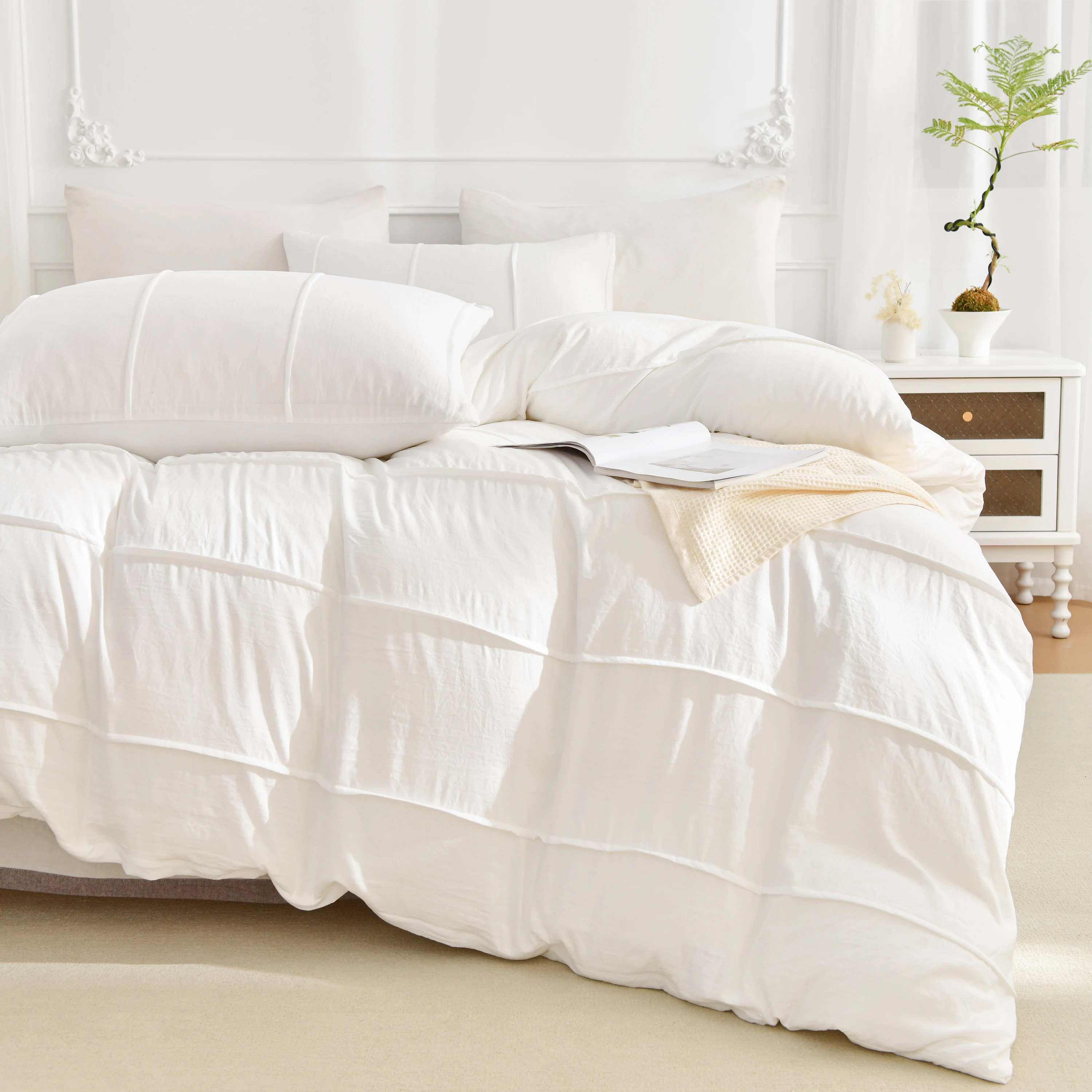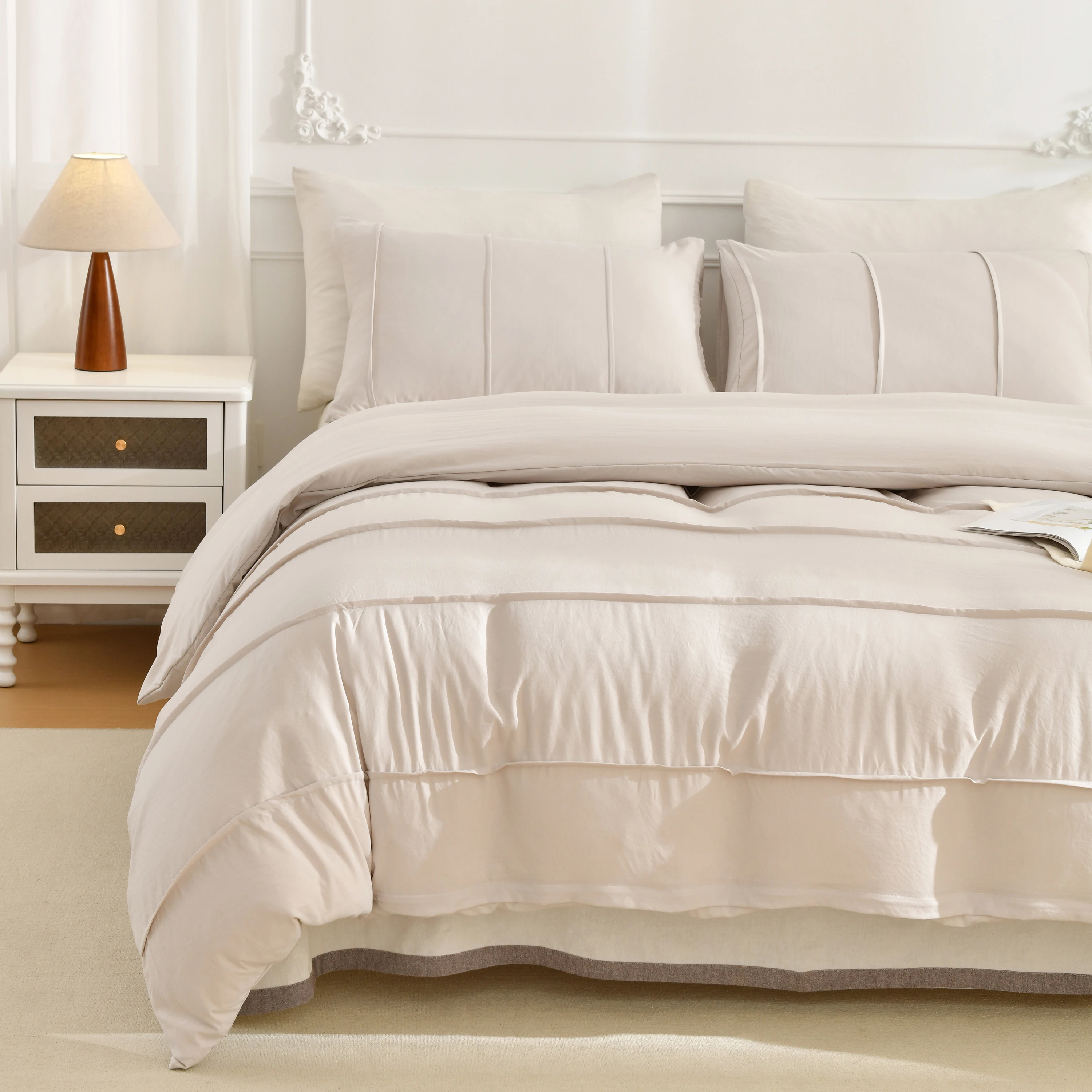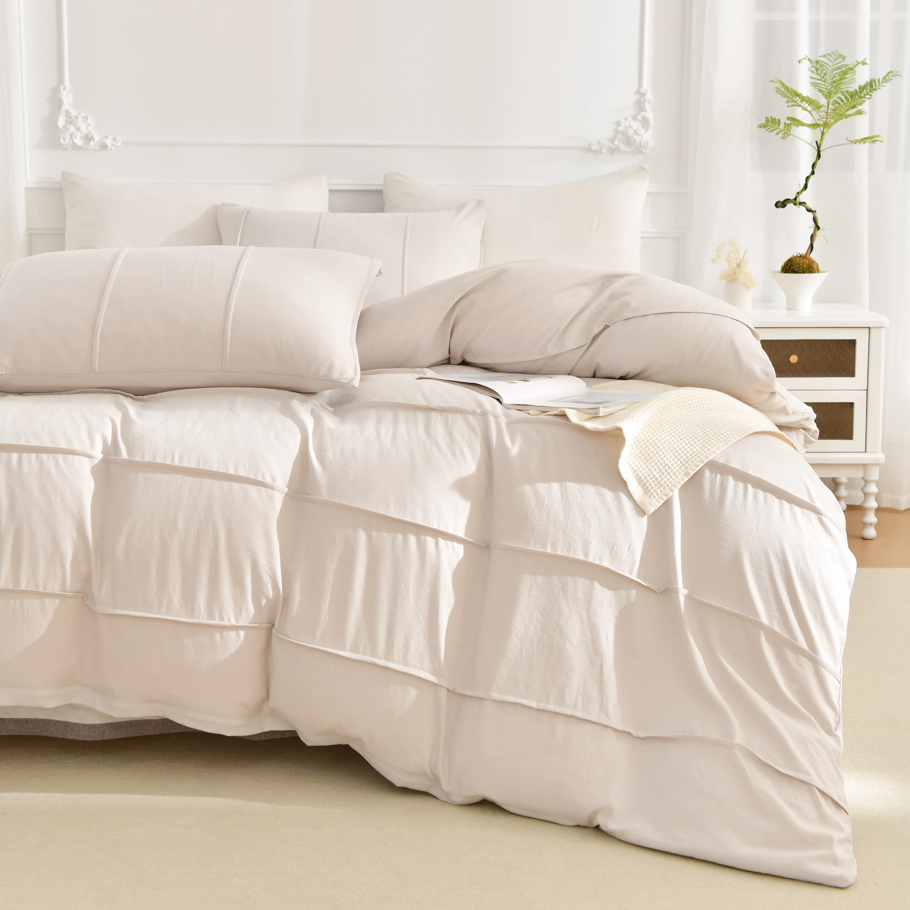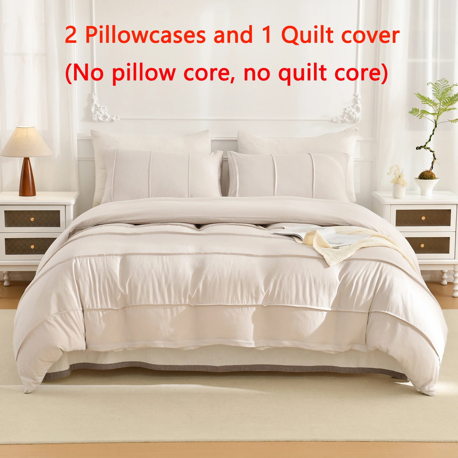 3PCS White And Khaki Duvet Cover Set Fold Comforter Cover Geometric Bed set soft lightweight Down Bedding Set for All season