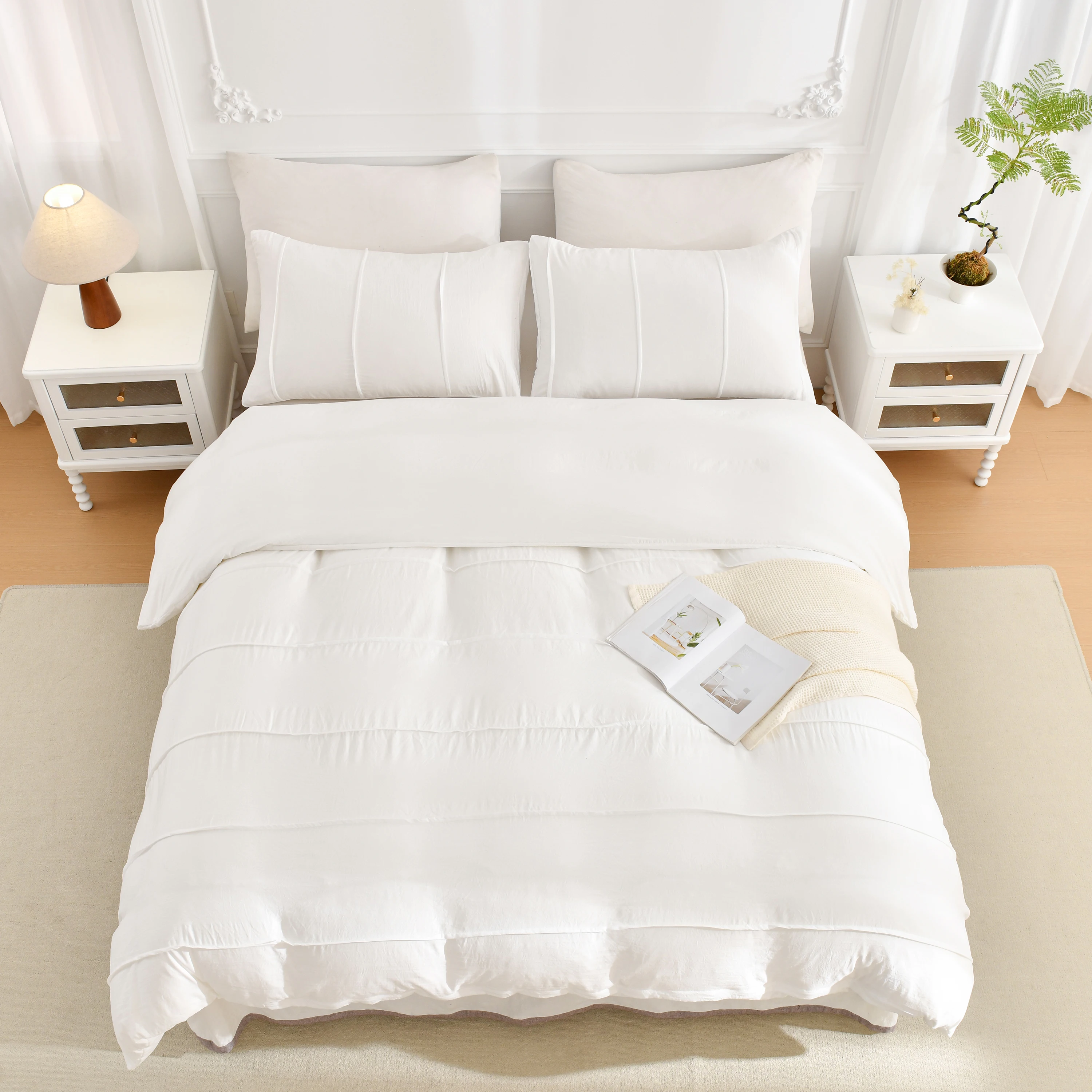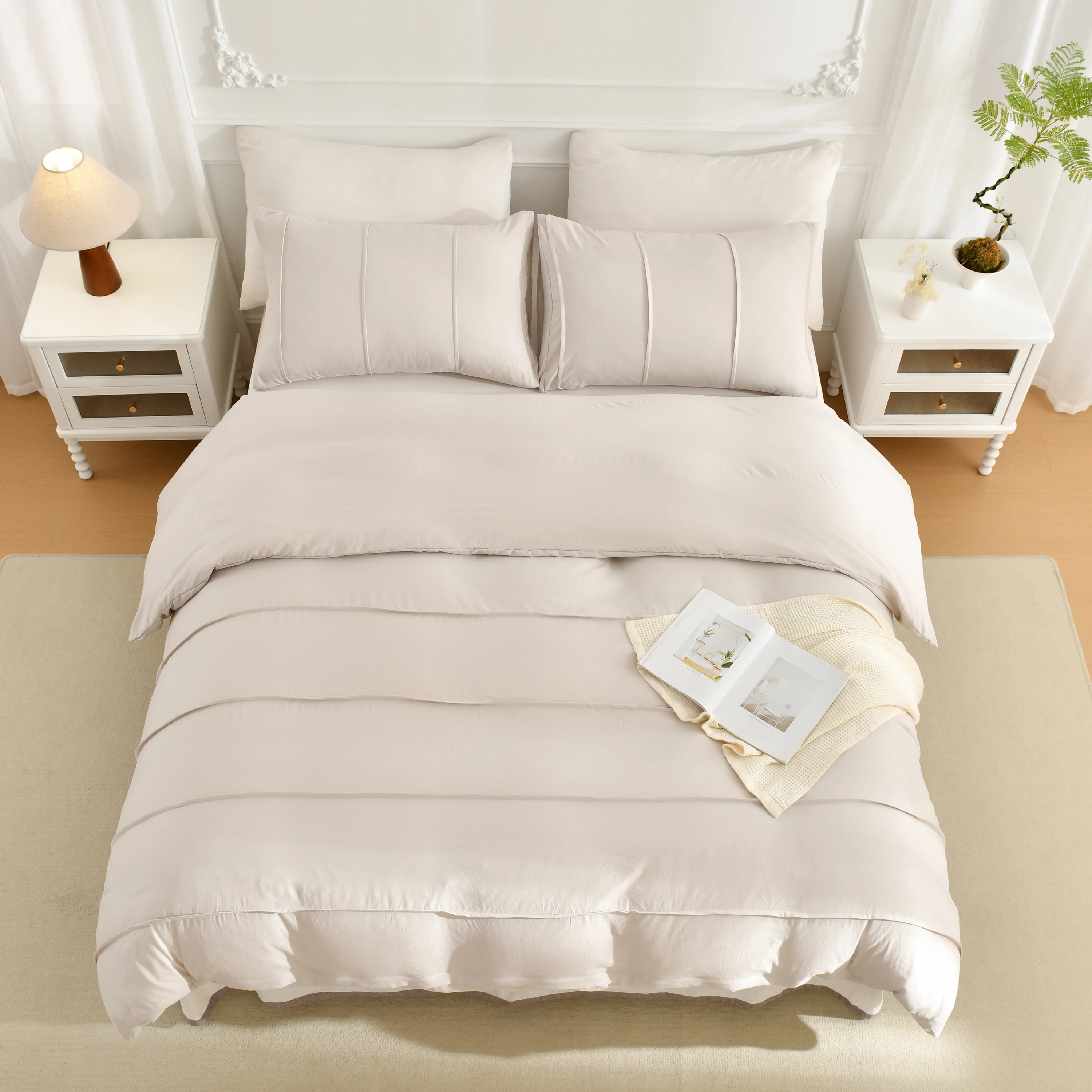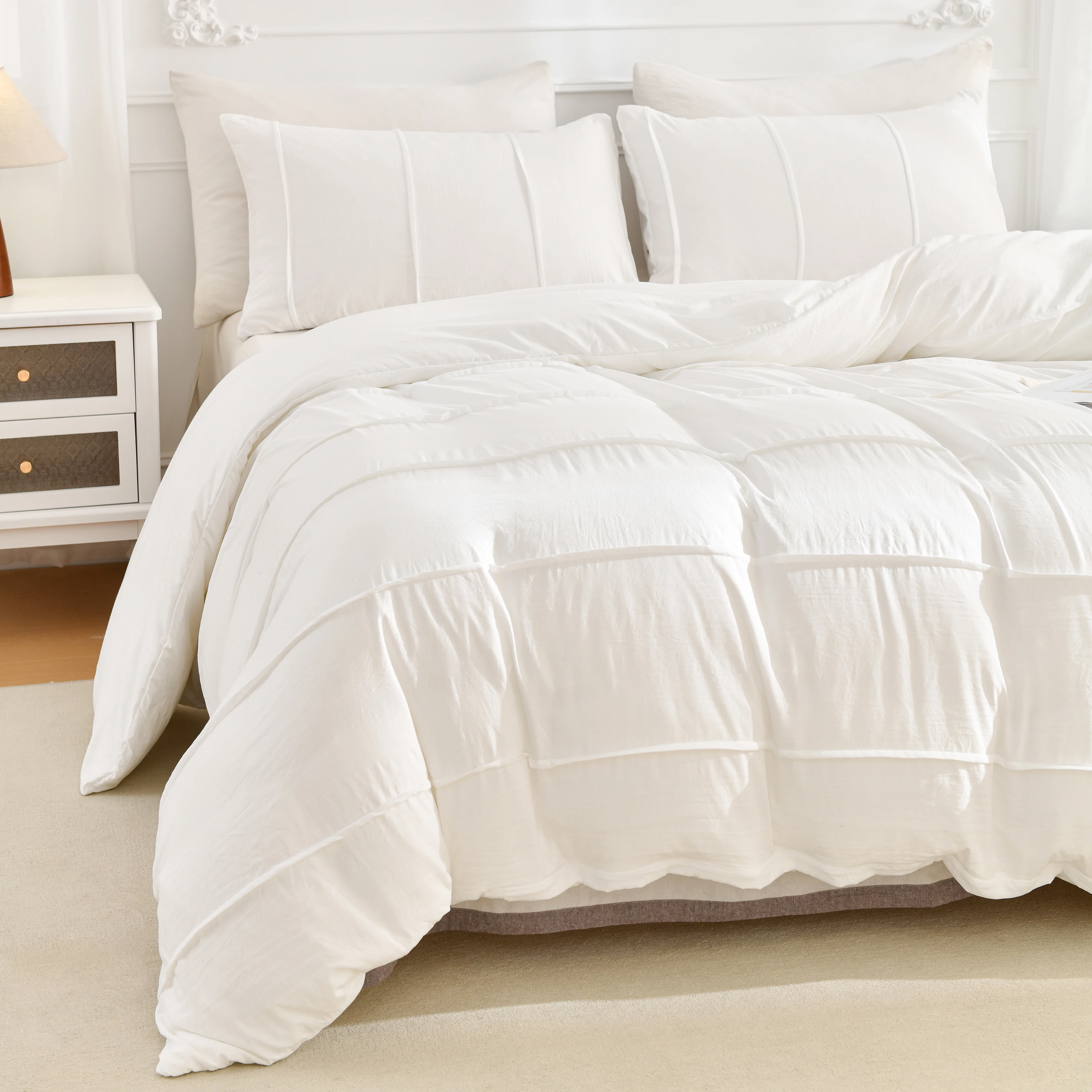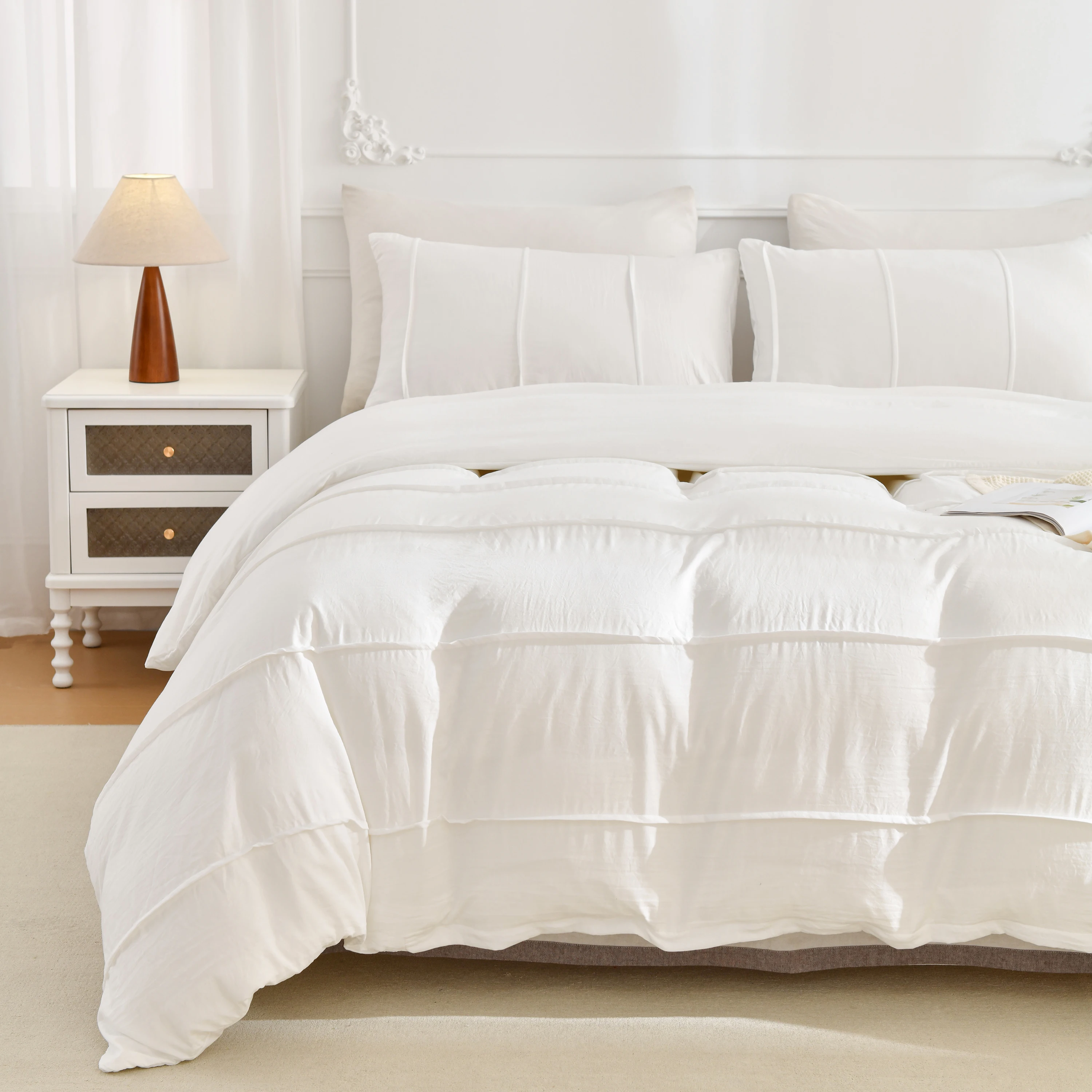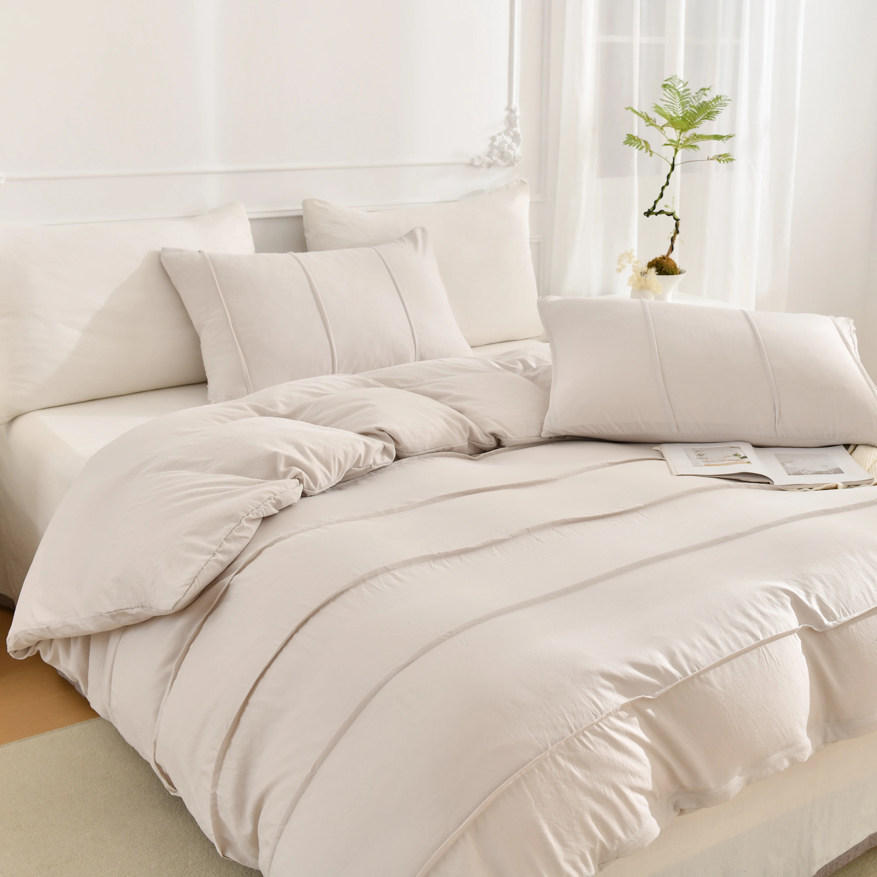 3PCS White And Khaki Duvet Cover Set Fold Comforter Cover Geometric Bed set soft lightweight Down Bedding Set for All season