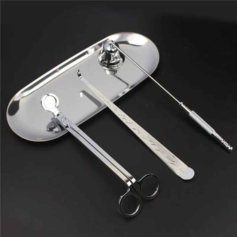 3PCS Wick Trimmer Home Care Modern Candle Tool Set Tray Rustproof Lovers Gift Snuffer Stainless Steel Portable Accessories