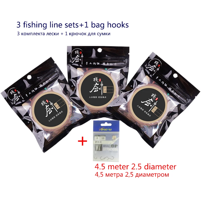3PCS Wide Angle Fishing Main Line Coil Tackle Combination Strong Pulling Force High Strength Line+1 Bag Fishing Hooks Tools