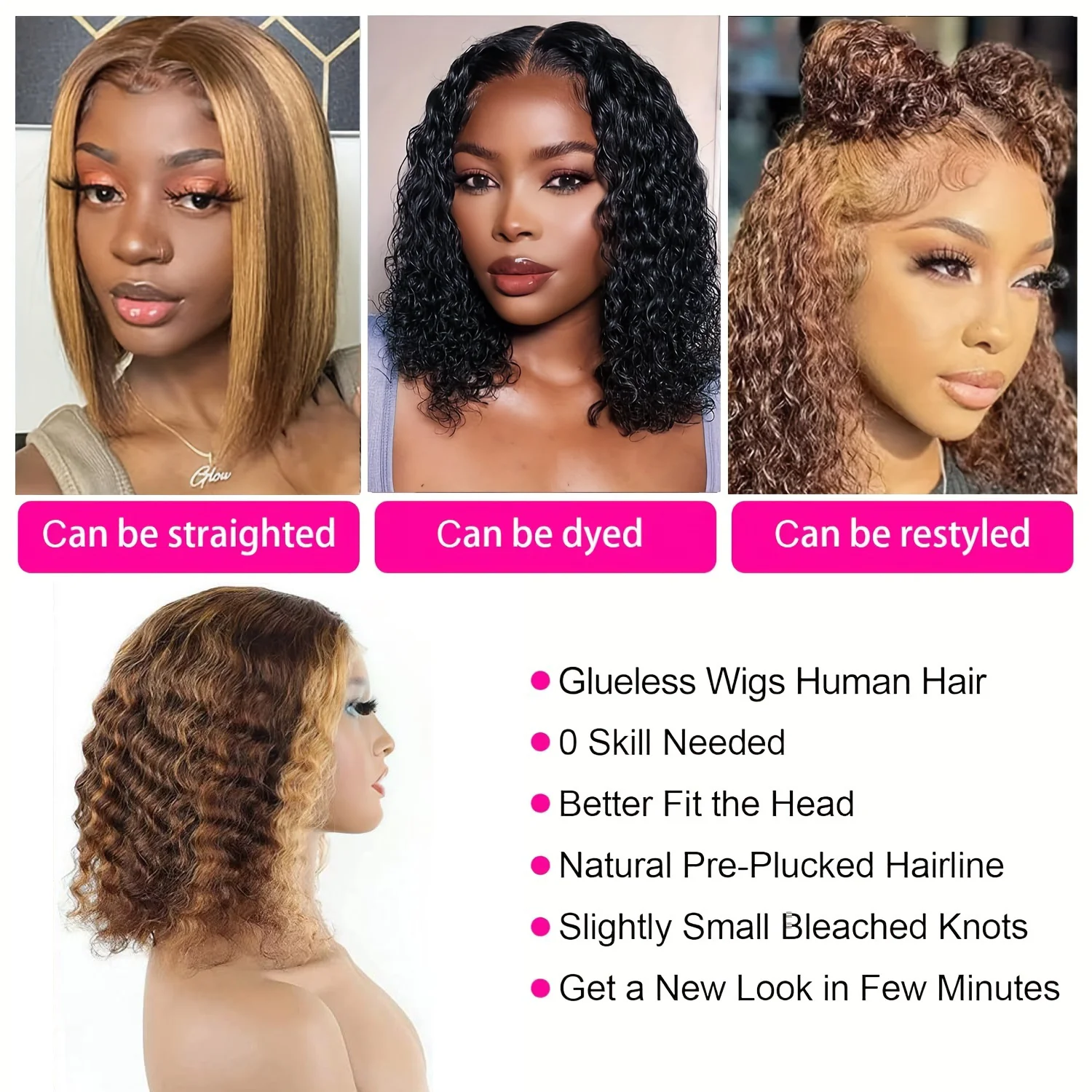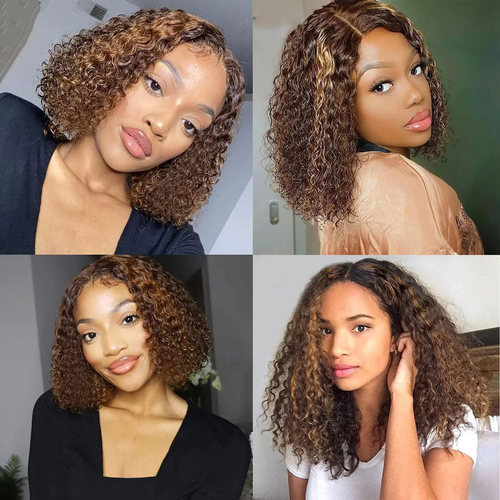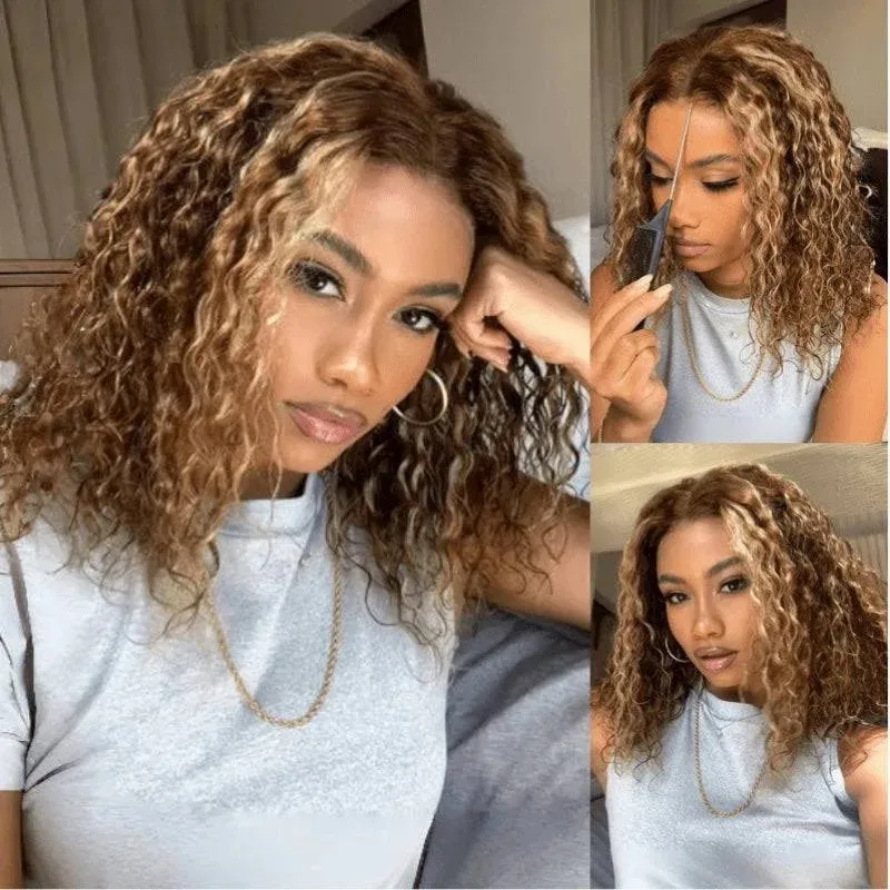 #4/27 Highlight Deep Wave BOB Wig 13×4 Lace Frontal Human Hair Wigs for Women Curly Wigs 180 Density Human Hair Pre Plucked Wigs