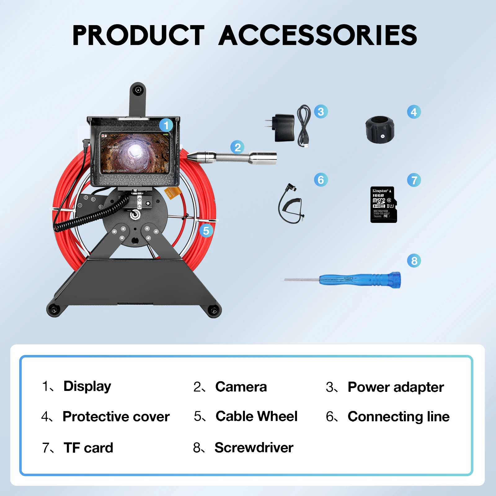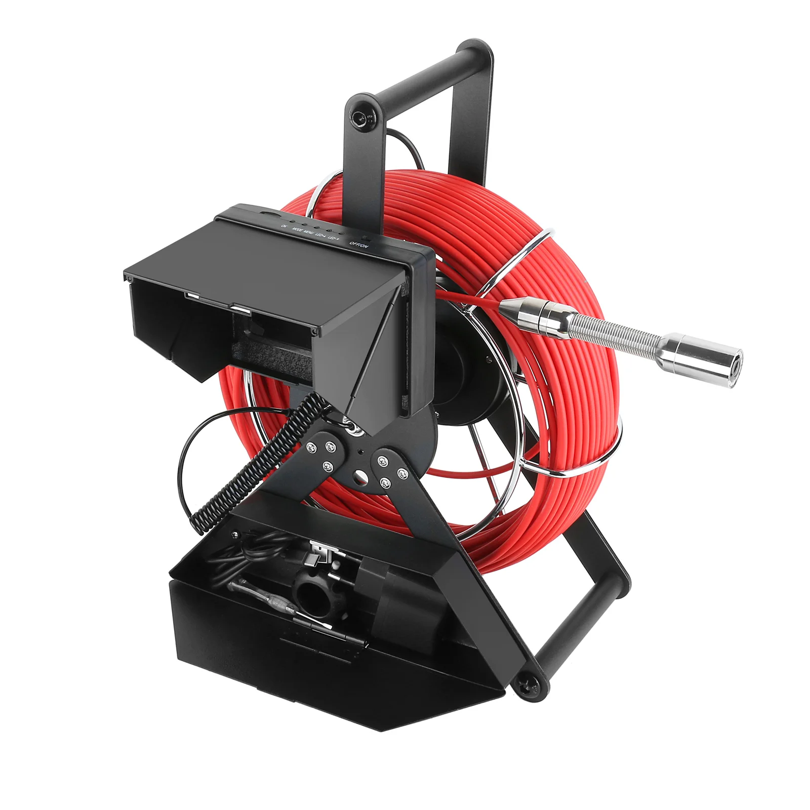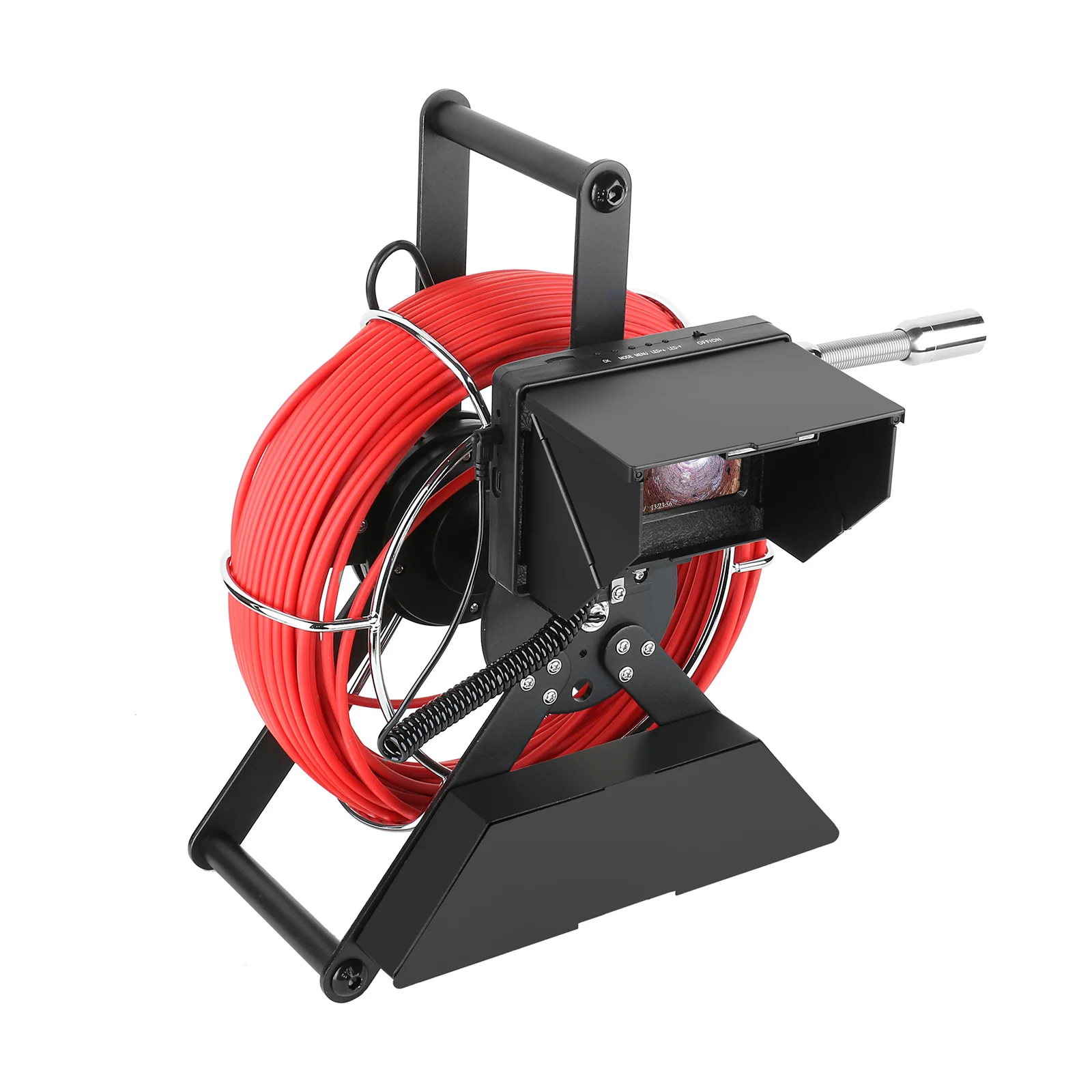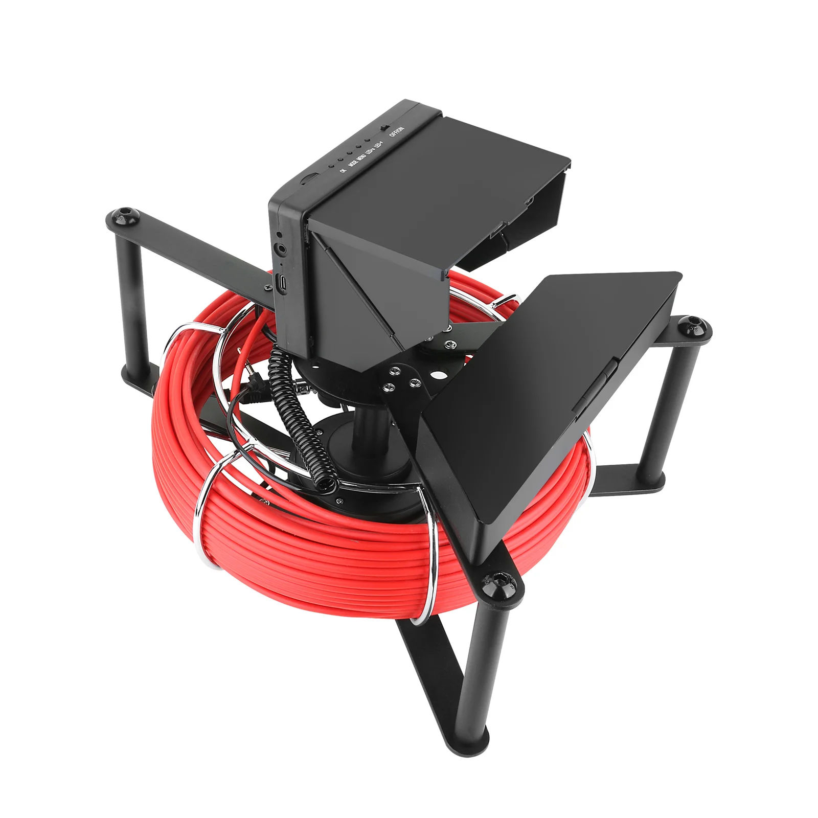 HD monitor with a sun-visor for outdoor inspections.The material of wire is fiberglass rod(diameter: 4.8MM),anti-corrosion/cold/tensile.