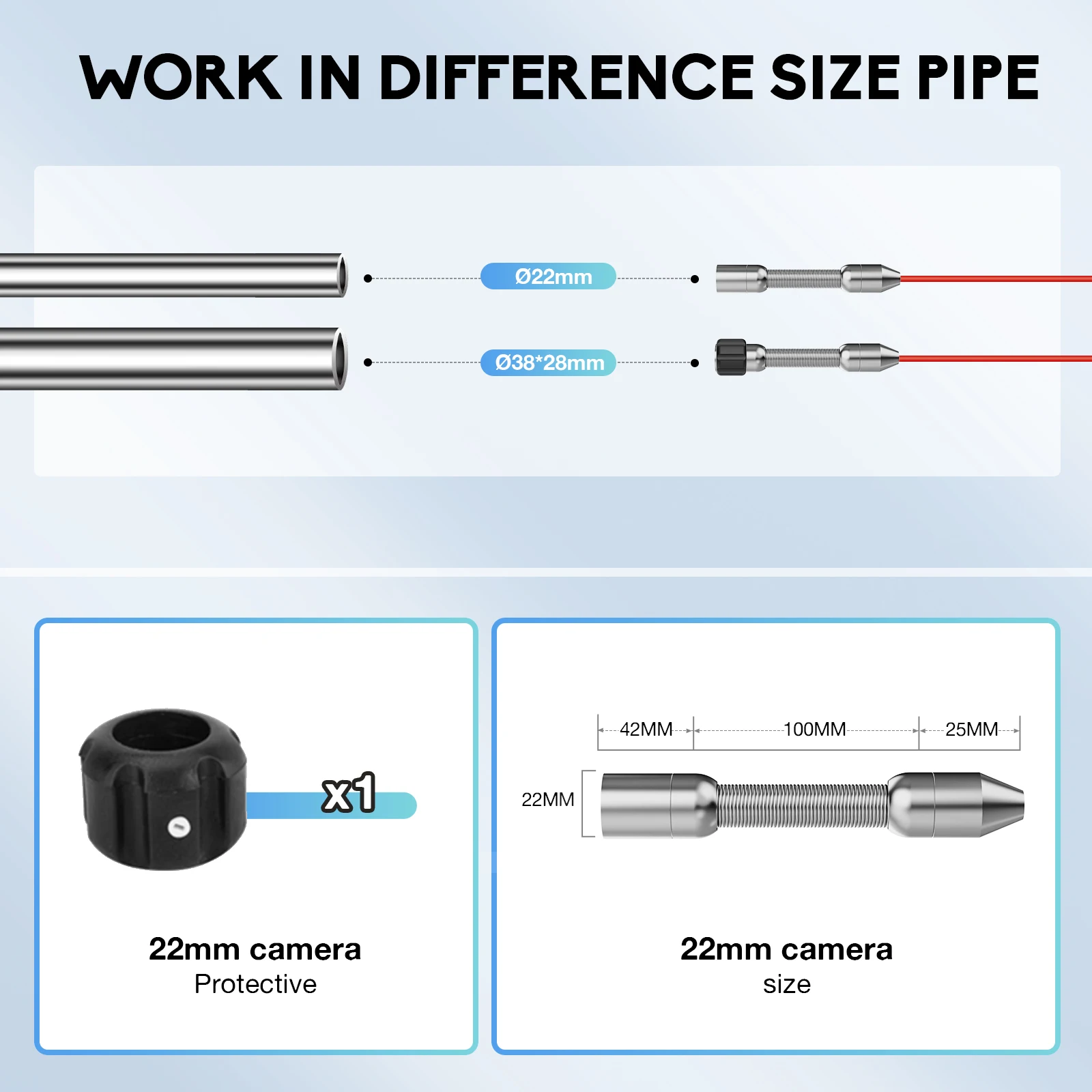 The Drain Sewer Pipeline Industrial Endoscope System with HD 1200TVL high-definition waterproof IP68 #304 stainless steel camera+tipped probe+145°wide viewing angle what make it clear when you inspect some places hard to watch. 8 pcs adjustable LEDs to illuminate the hard-to-reach inspection area.Inspections will be seen more clearly in the dark environment.