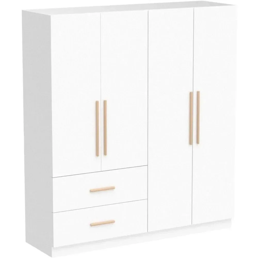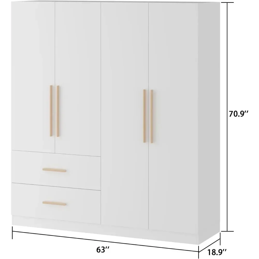 4 Doors Wardrobe, Armoire Dresser with 2 Drawers, Wooden Wardrobe Cabinet for Hanging Clothes, Wardrobe Clothes Organizer, White