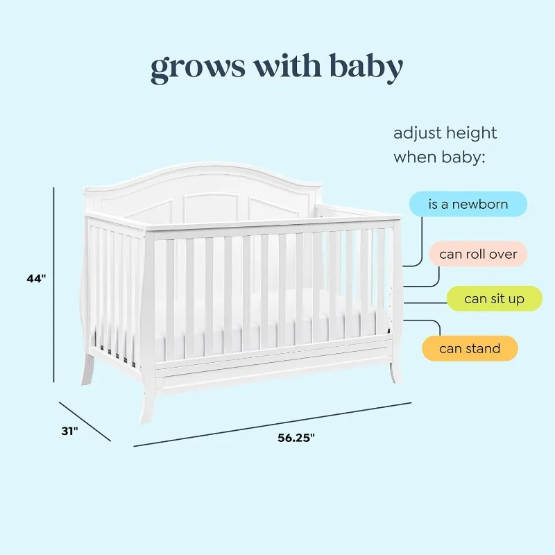• GROWS WITH BABY: Four adjustable mattress positions that can be lowered as your baby begins to sit and stand. Easily converts to toddler bed, daybed, and full-size bed (toddler conversion kit No.M12599 and full-size conversion kit No.M5789 sold separately)