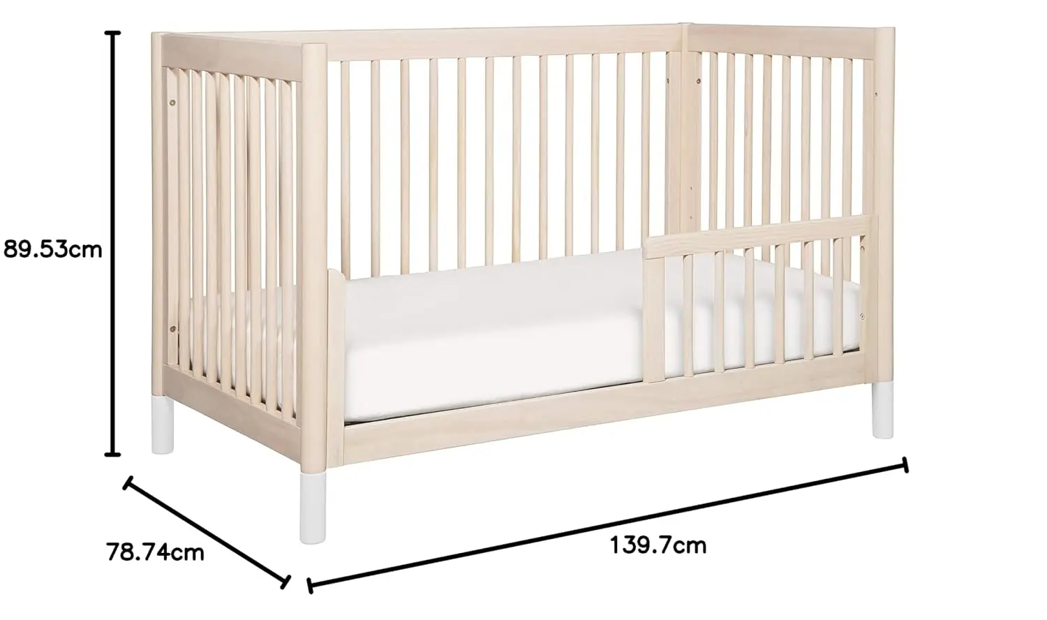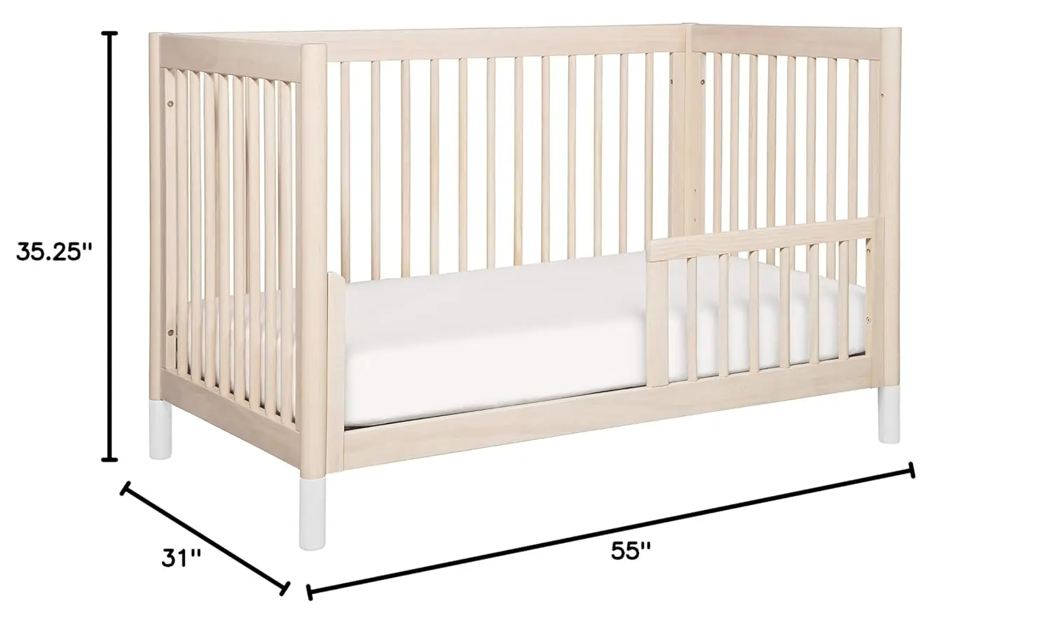 4-in-1 Convertible Crib with Toddler Bed Conversion in Washed Natural and White,55″L X 31″W X 35.25″H