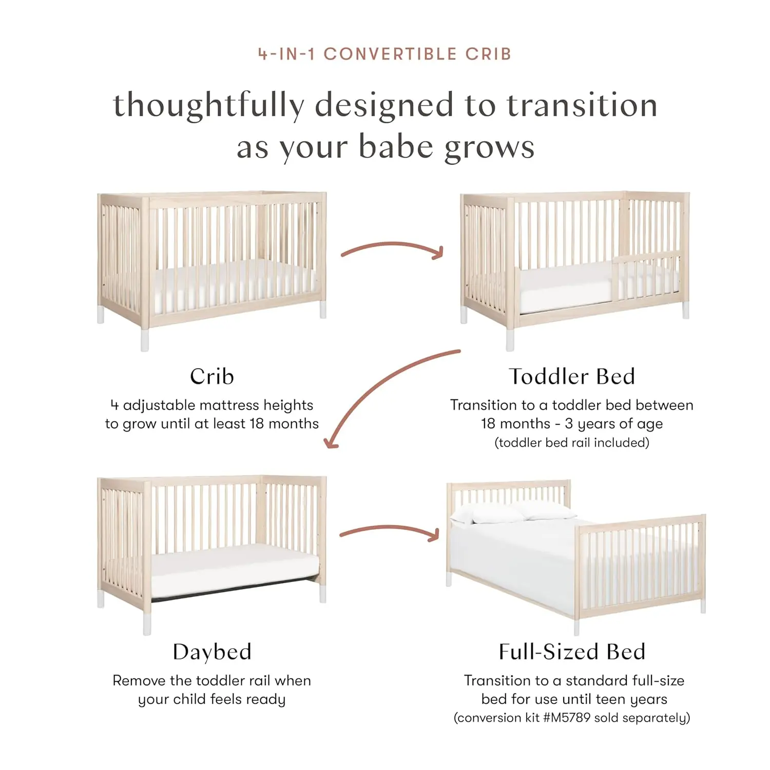 - 4-IN-1 CONVERTIBILITY: The Gelato transitions from crib to toddler bed and daybed, with an included toddler bed conversion kit. And converts to a full-sized bed with an additional conversion kit, sold separately (No.M5789)