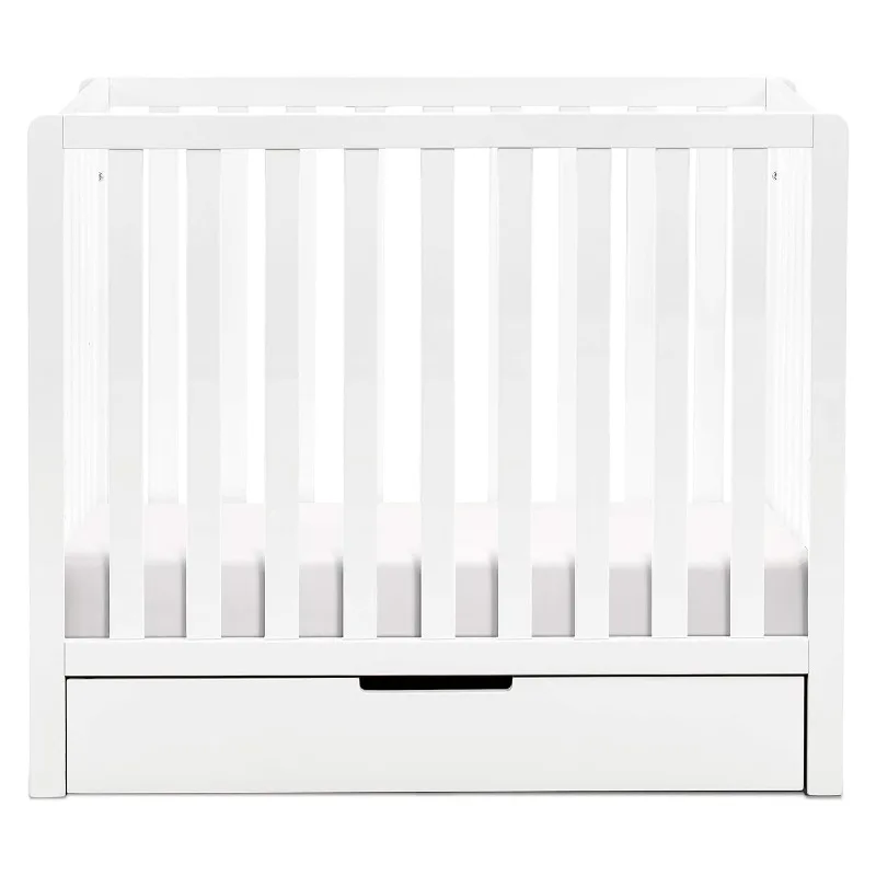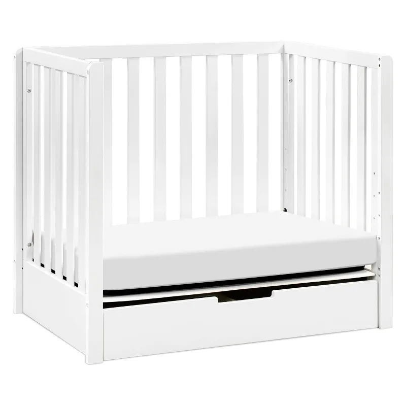 4-in-1 Convertible Mini Crib with Trundle Drawer in White, Greenguard Gold Certified