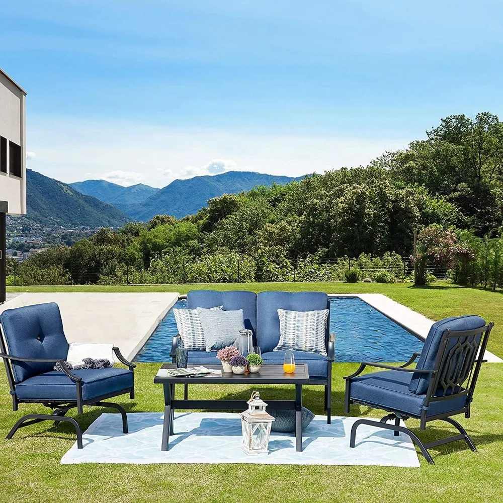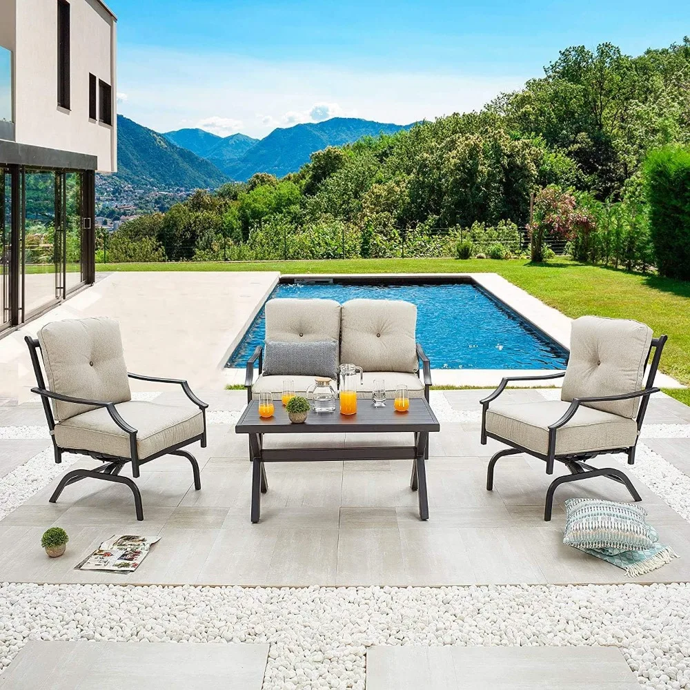 4 PCS Patio Furniture Conversation Set Outdoor Furniture Set Metal Chairs w/All Weather Cushioned Love Seat,Poolside Lawn Chair