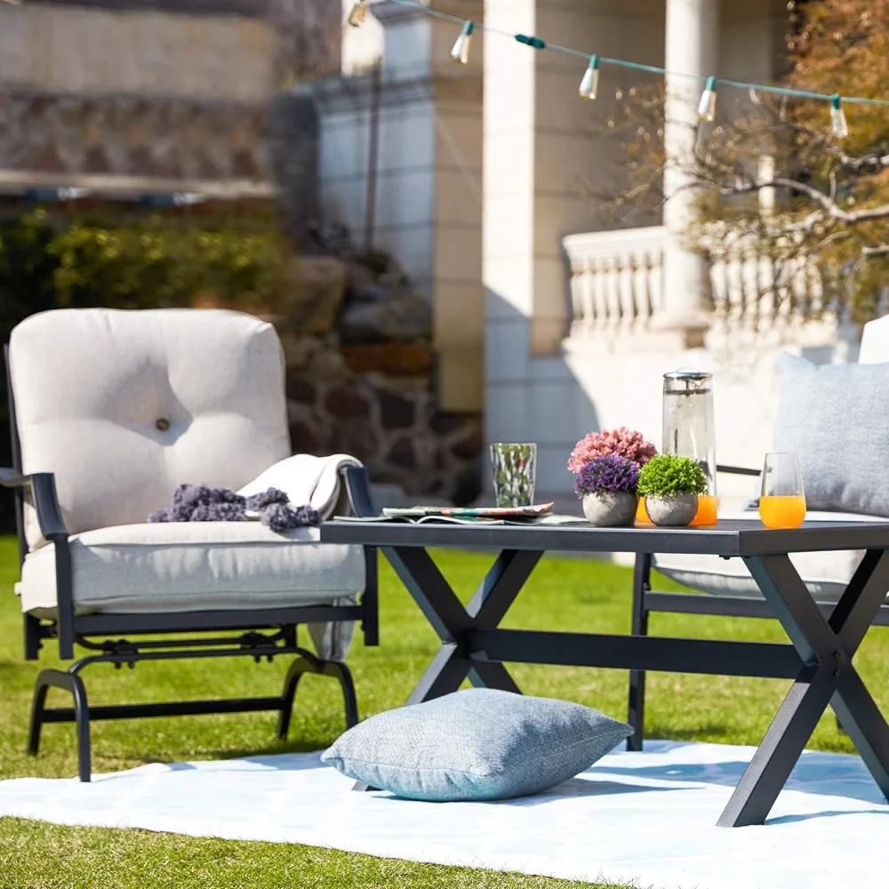 • ✫This patio conversation set can be placed in a variety of ways to suit different lifestyles and environments. Create a new look and feel for your patio, pool, garden, outdoor, porch. single chairs has a rocking base. You can relax yourself with slightly and smooth rocking motion. Soothing motion helps you sit back, relax, and enjoy the breeze in your garden or backyard.