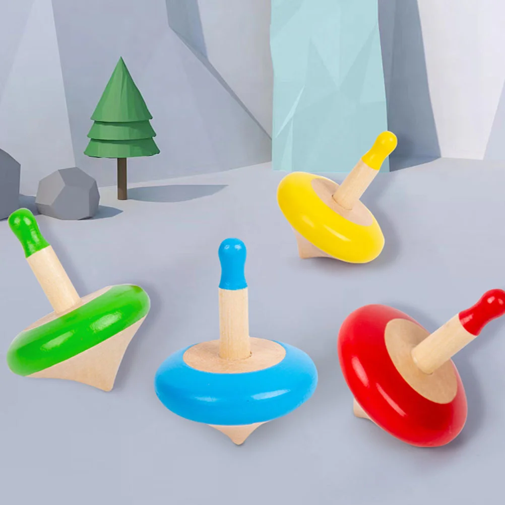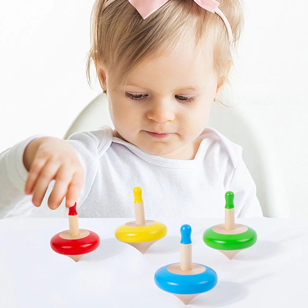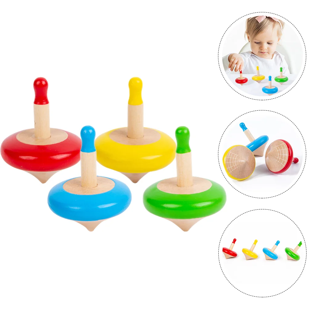 4 Pcs Small Spinning Top Gyro Toy Toys Mini Wooden Kids Supply Child