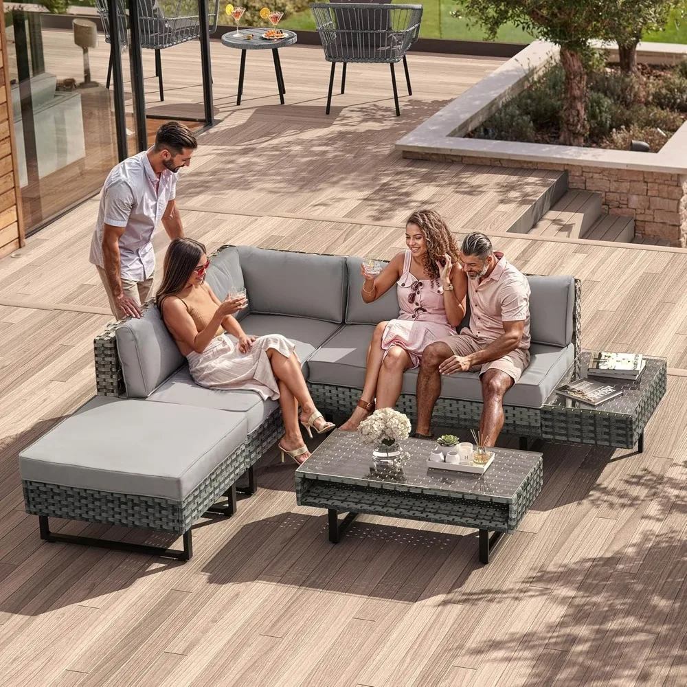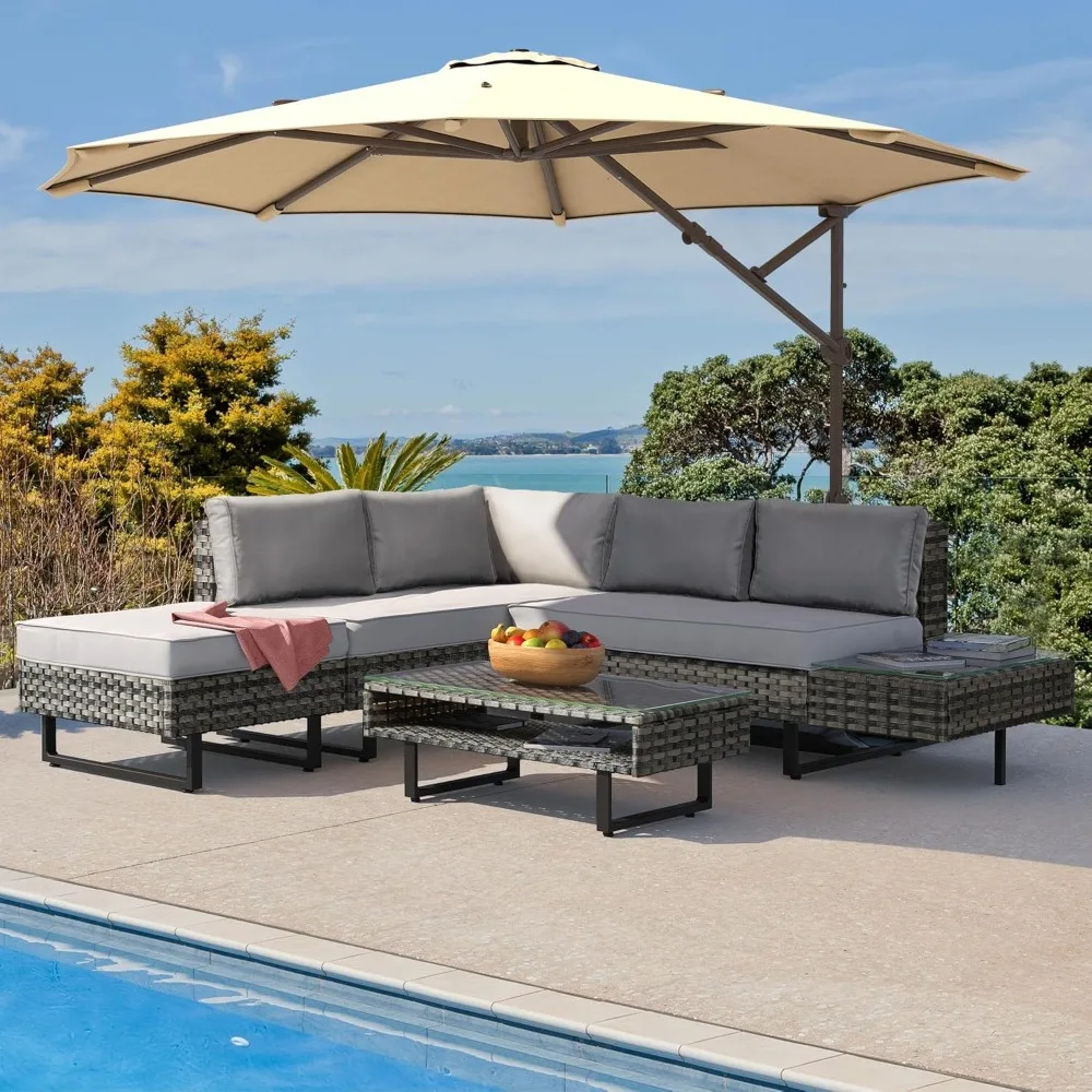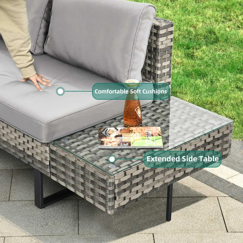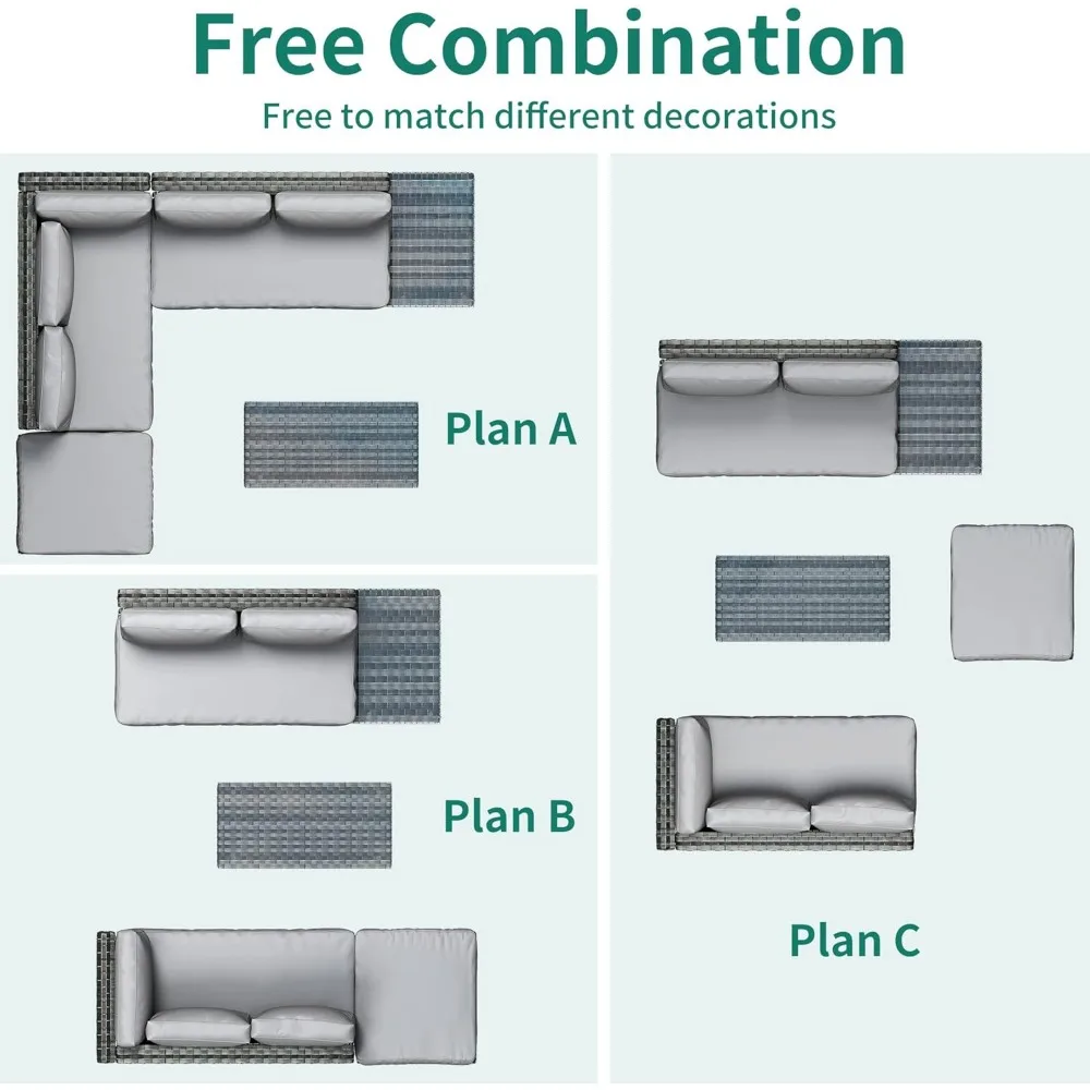 - Large 5 Seats Lounger: Versatile as a 5 seats L-shaped lounge sofa, love-seat or daybed, flexible & easy moving for you to enjoy a cozy leisure time everywhere you want, ideal for patio, porch, backyard, balcony, deck, poolside, etc.