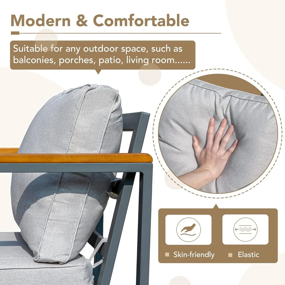 Allows you to relax and enjoy the beautiful sunny weather in this cozy vintage outdoor set. Sturdy steel construction and weather-resistant acacia wood ensure fresh appearance and durability. The pads are a full four inches long, fit the body better, and the fabric protects against UV rays and fades fast. The 4 Piece Patio Furniture Sets are sure to make your outdoor space even more welcoming.