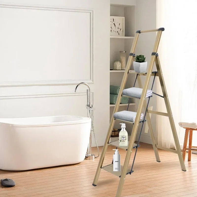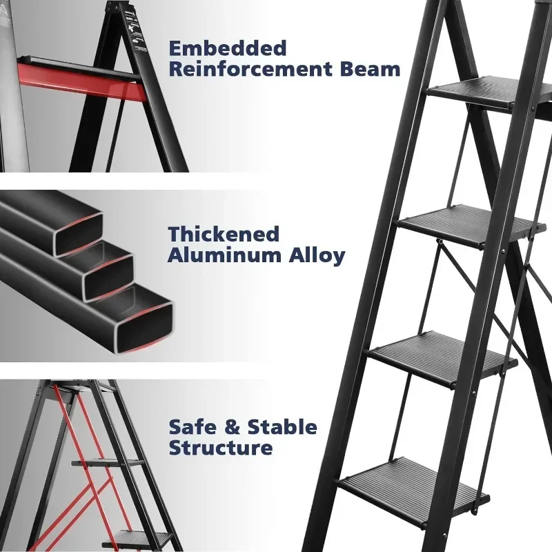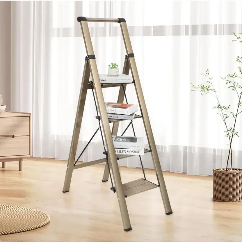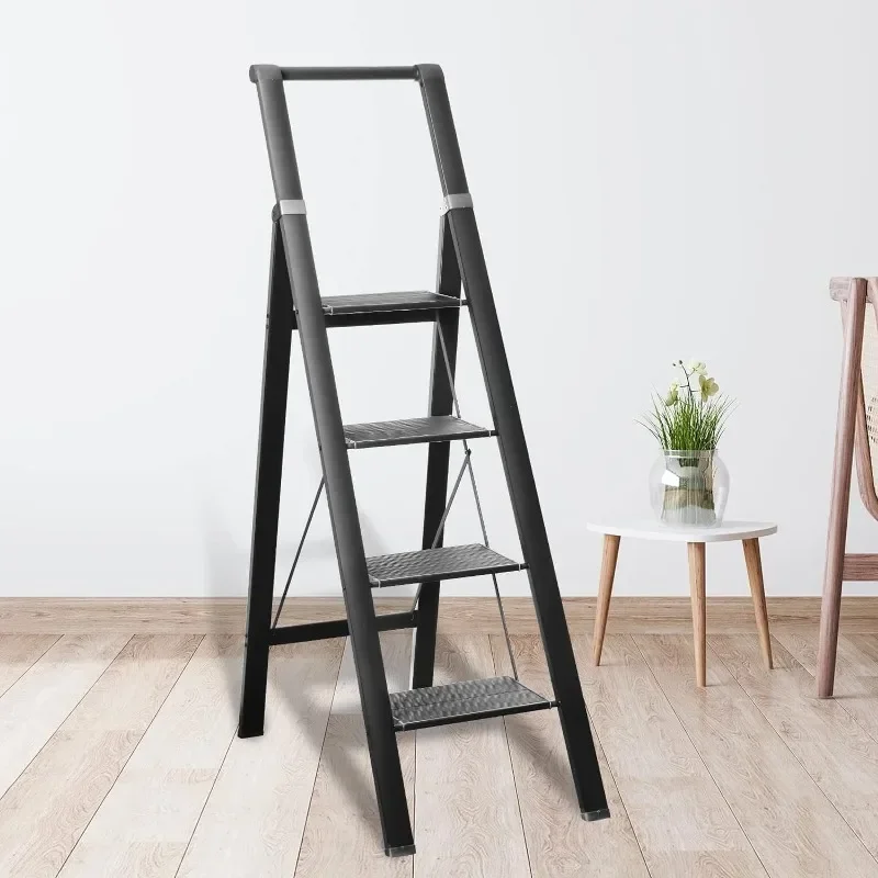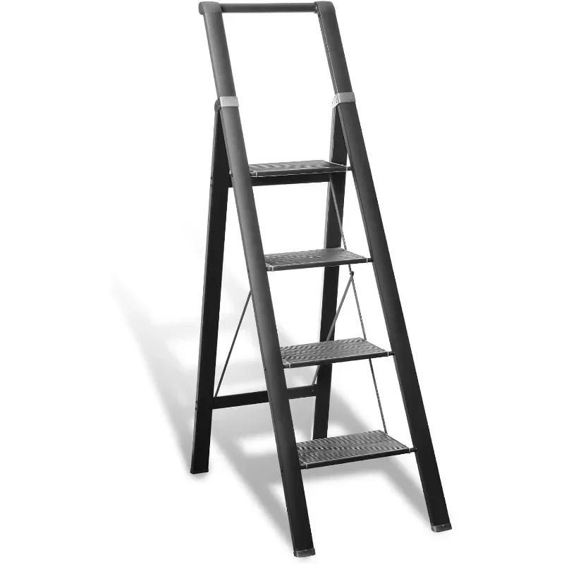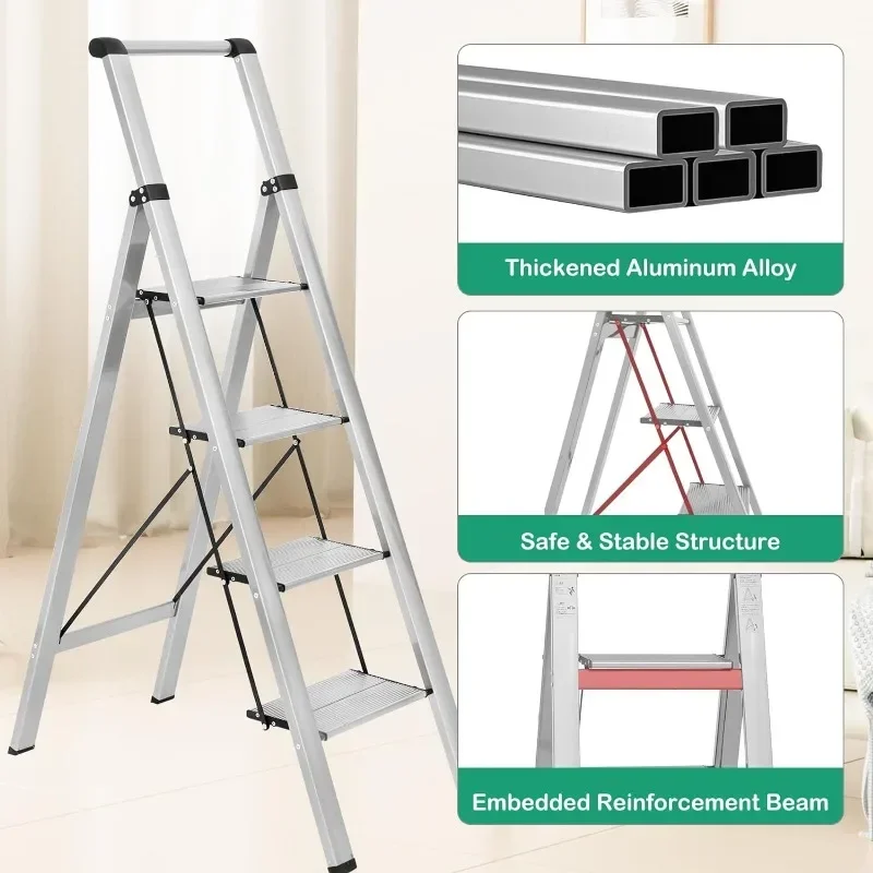 4 Step Ladder, Aluminum Folding Steps Stool with Convenient Handgrip, Lightweight Ladders with Anti-Slip Sturdy Pedal