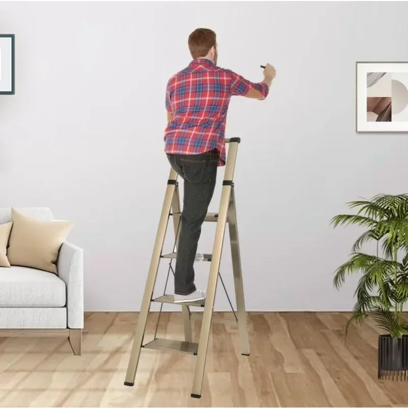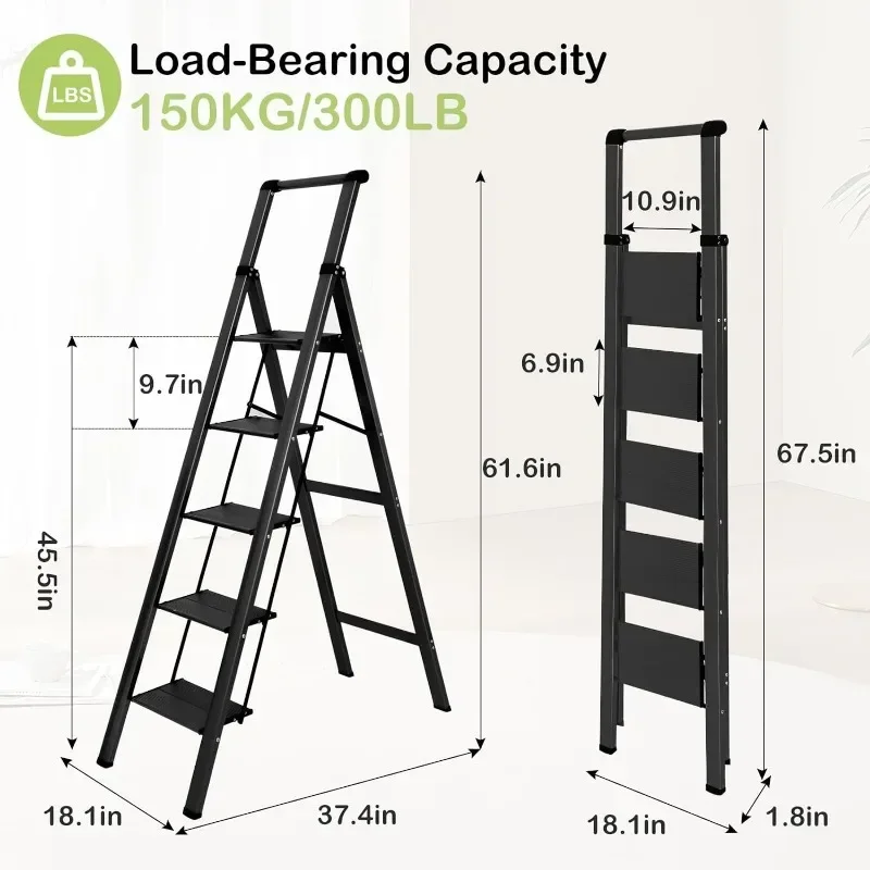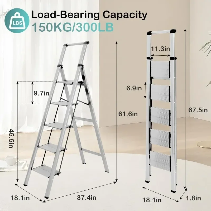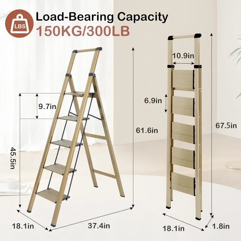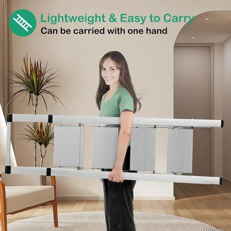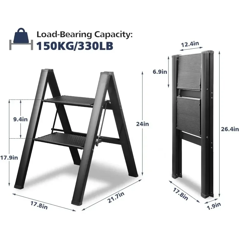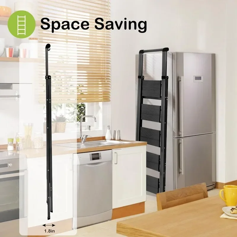 - & �� ����】: Easy-to-fold ladder is lightweight and easy to carry. It can be raised with one hand. The compact ladder is easily stored in tight corners, under beds and sofas, or in the trunk. 4 Step Ladders Unfolded: 55″H X 18.1″W X 30.1″D, Folded: 58.5″H X 17.3″W X 1.9″D, Net Weight: 11.7 lbs.