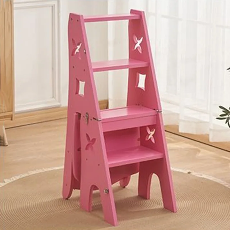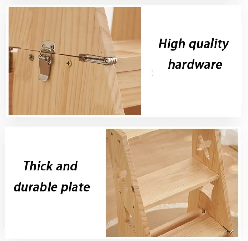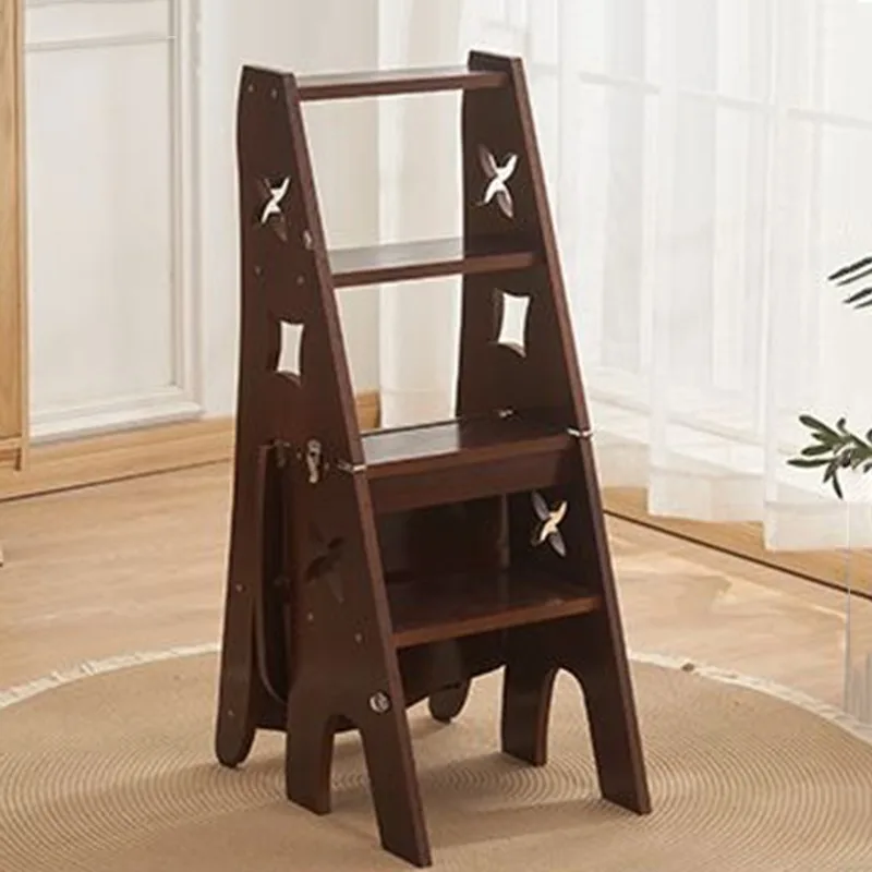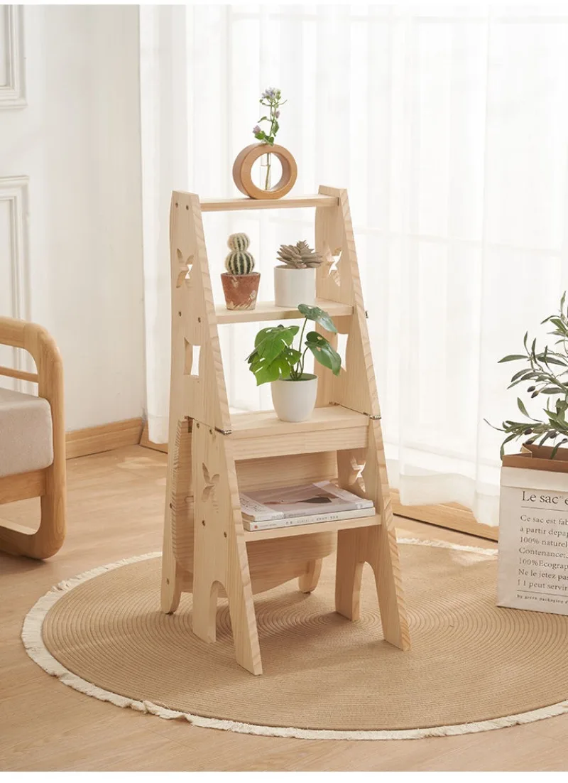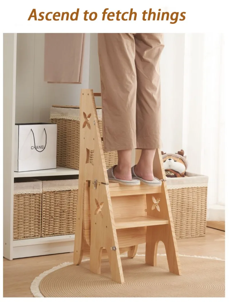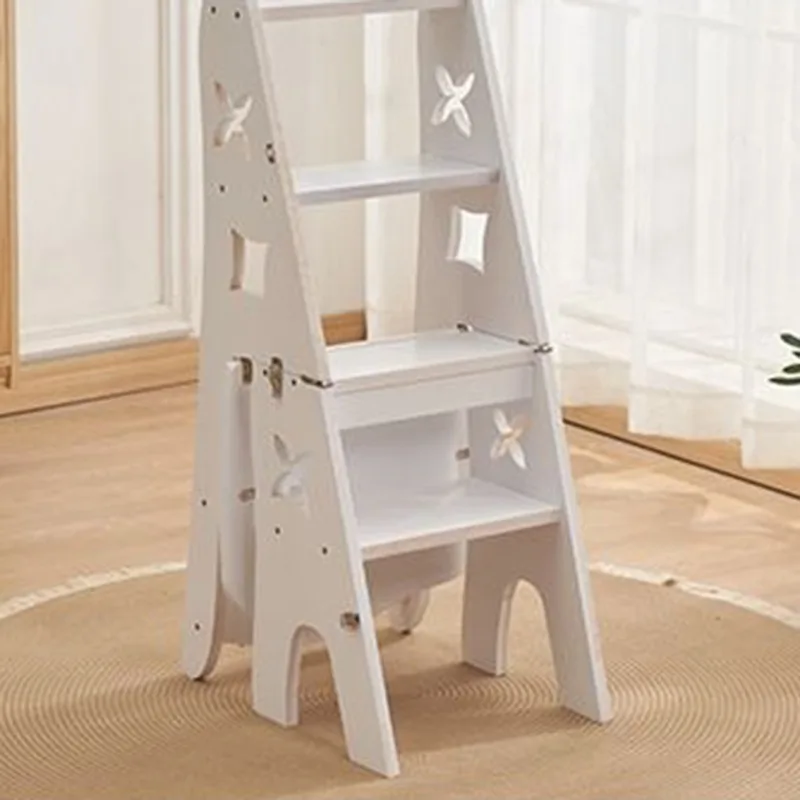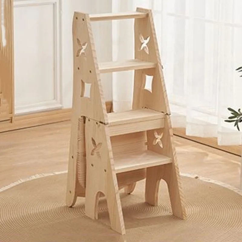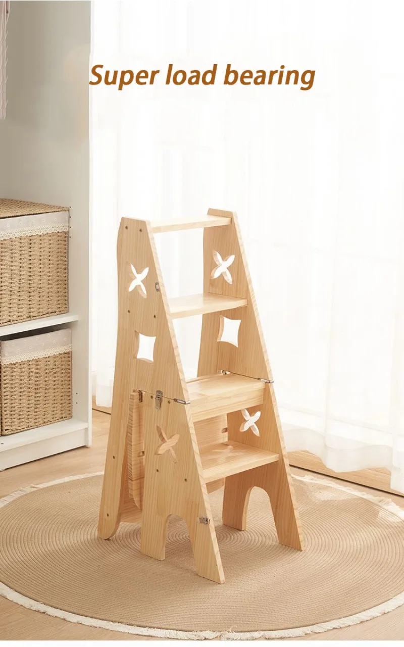 4-step Ladder Solid Wood Step Stools Folding Ladders Multi-function Home Furniture Easily Reversible with High Pedal Design