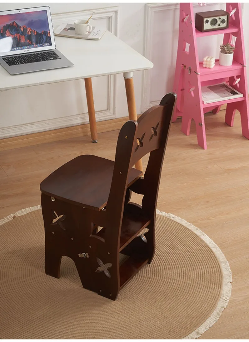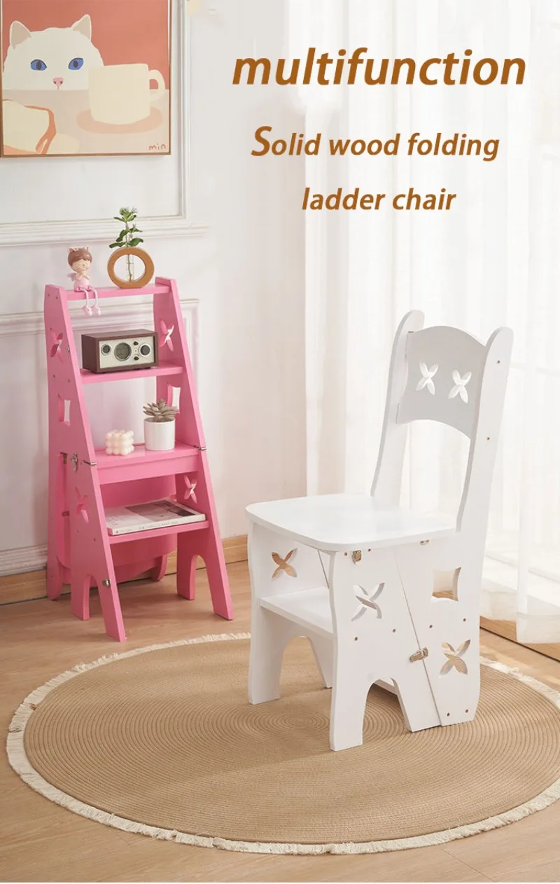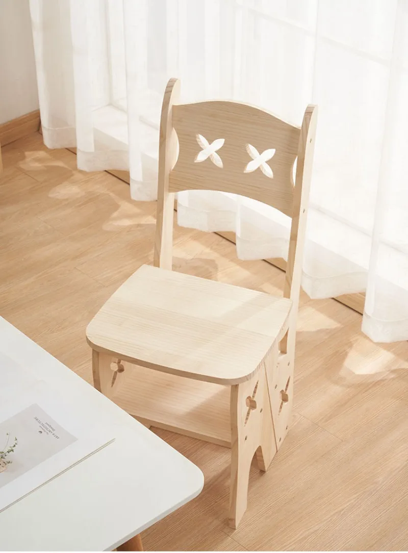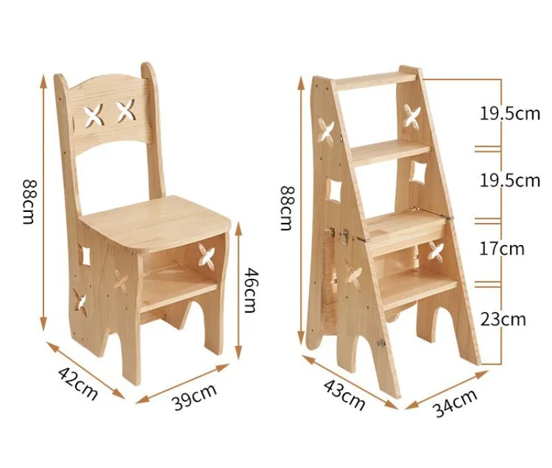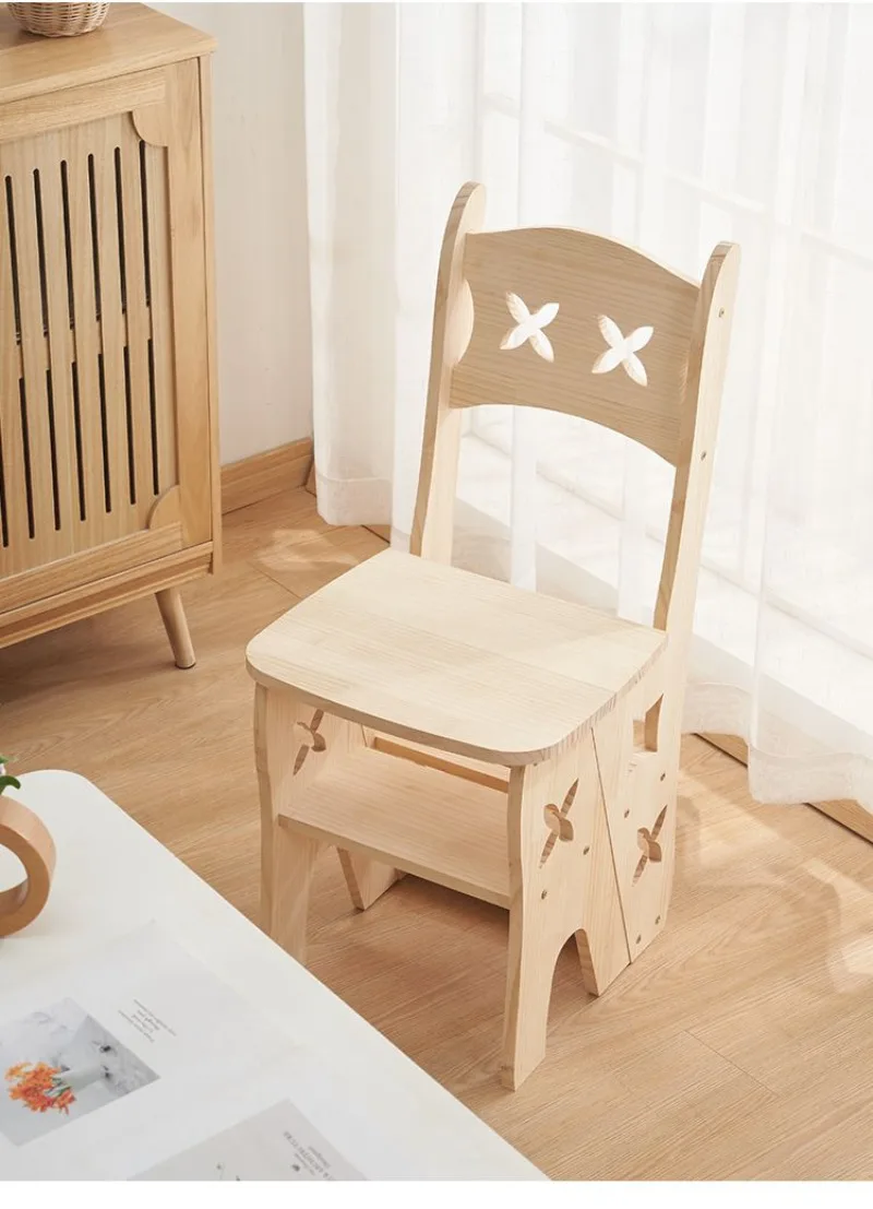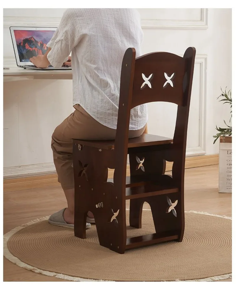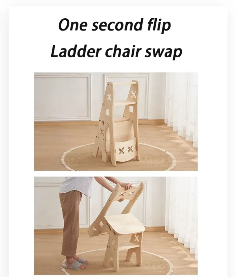 4-step Ladder Solid Wood Step Stools Folding Ladders Multi-function Home Furniture Easily Reversible with High Pedal Design