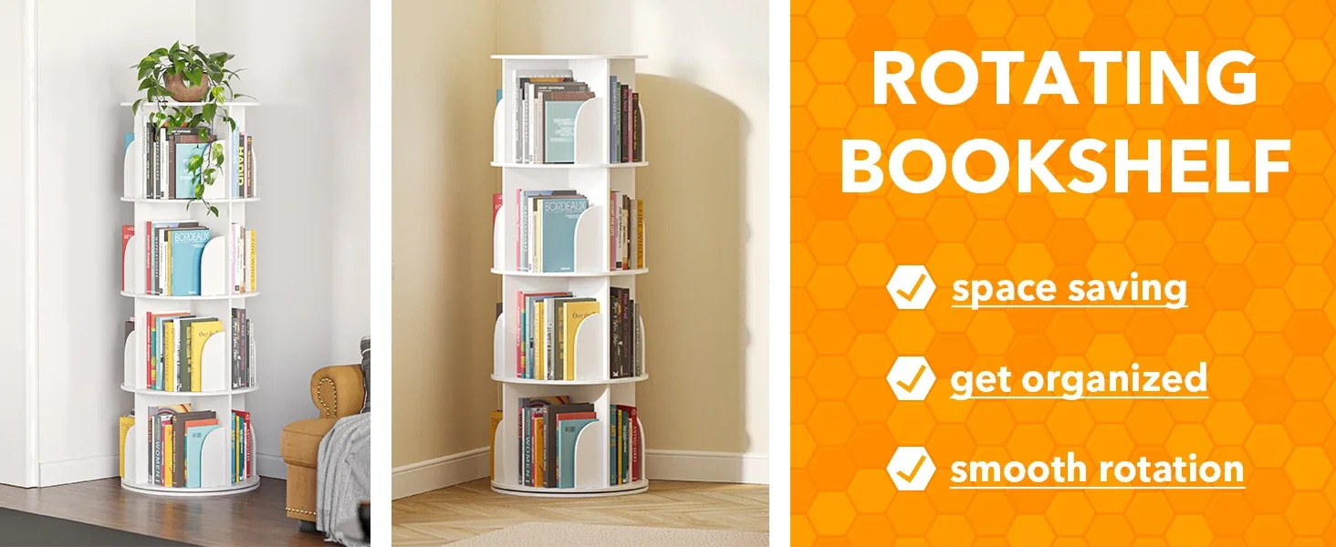 4 Tier Rotating Bookshelf Tower, Spinning Bookcase Lazy Susan, Revolving 360 Book Shelf Storage Round Carousel, Vertical Rotate
