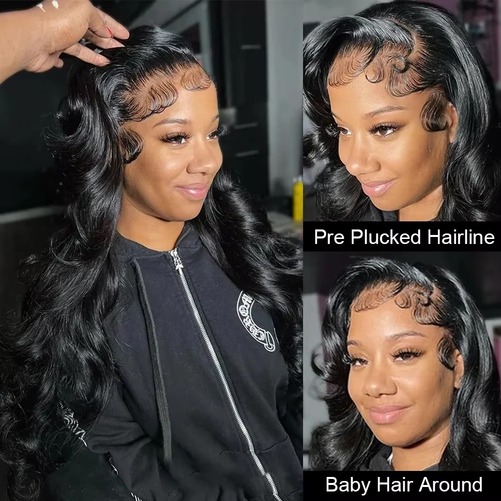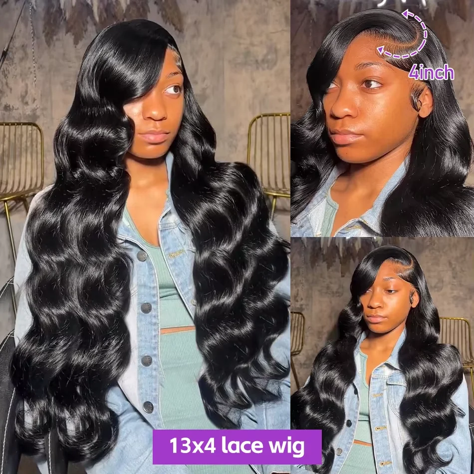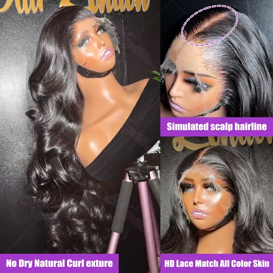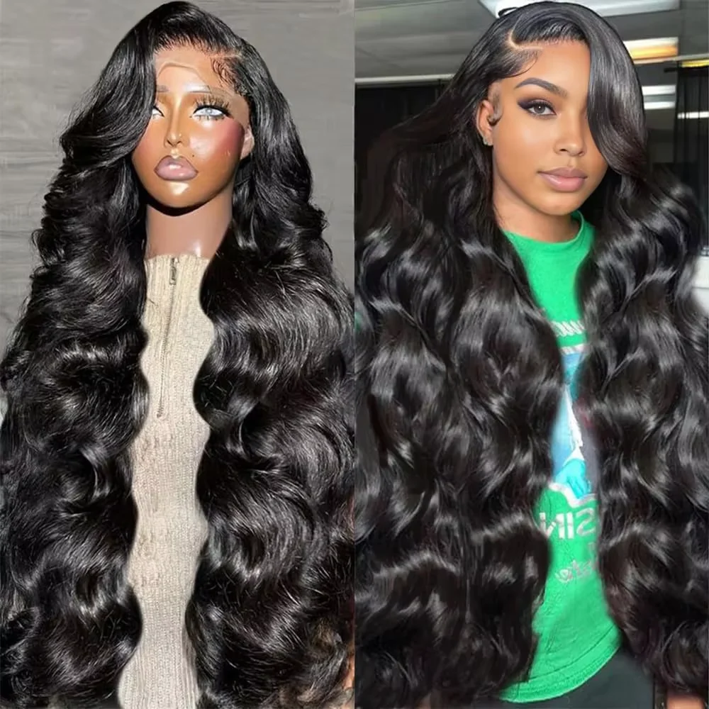 40 Inch Body Wave 13X4 Lace Front Human Hair Wigs 300 Density Baby Hair Lace Front Wig Water Wave Natural Color For Black Women