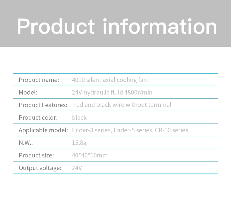4010 Fan 24V Silent Brushless Cooling Fan 3D Printer Part 300mm Oil Bearing Axial 40mmx40mmx10mm for Ender-3 v2 Ender3