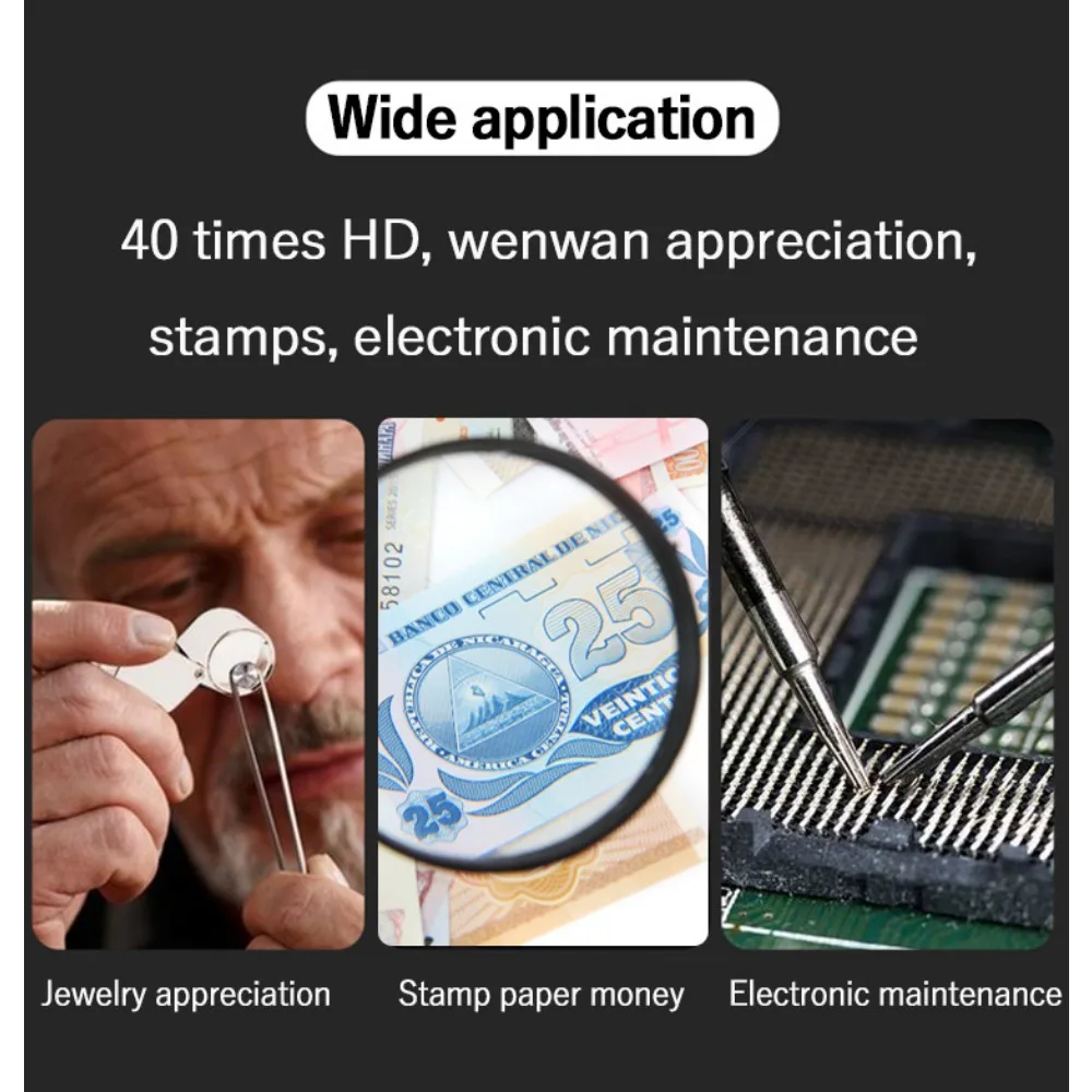 1. High Magnification: 40X magnifying power to help you see the smallest details of your jewelry, diamonds, and jade.