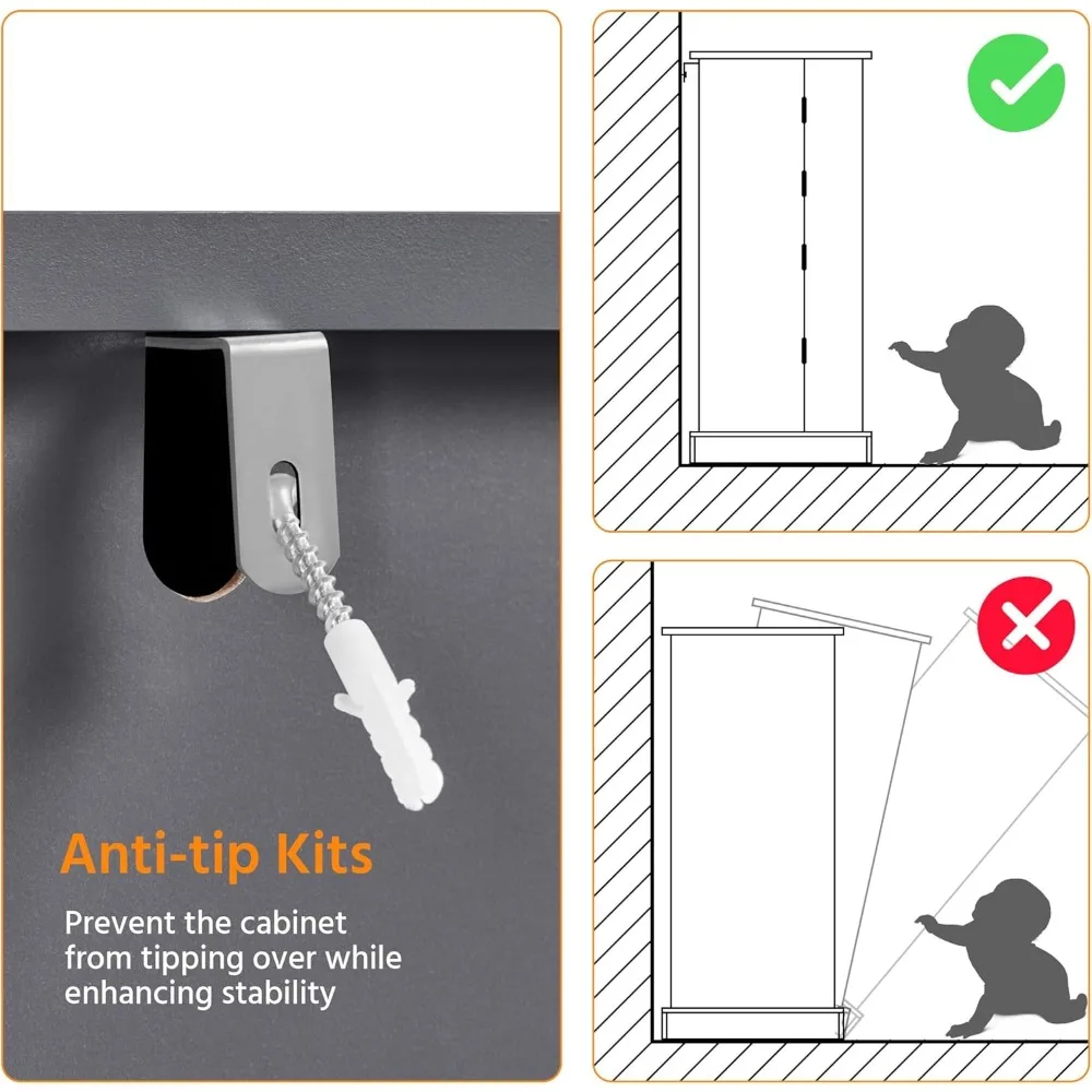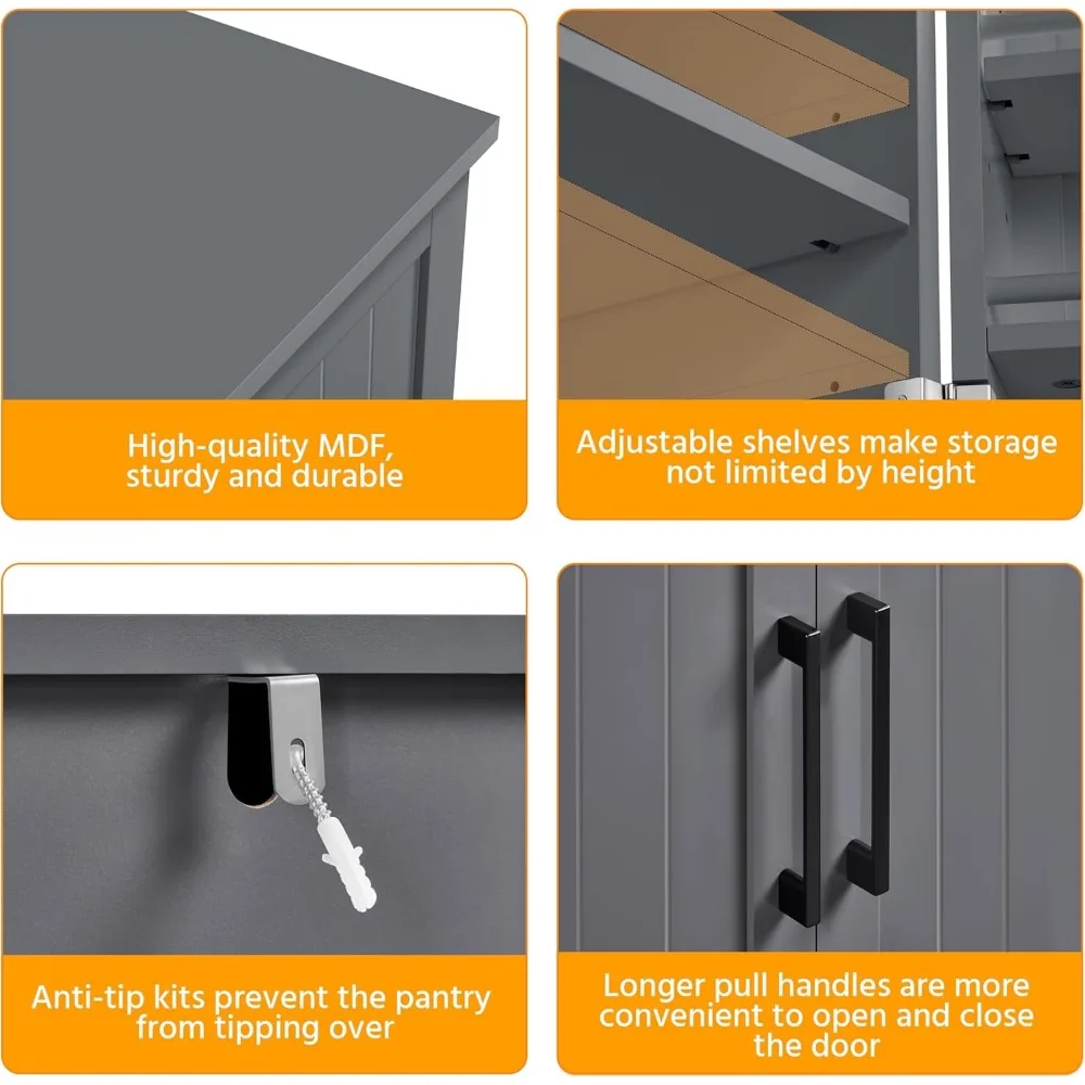 • Fine Materials: The kitchen storage unit is constructed of sturdy CARB Phase 2 MDF with a water-resistant surface and firm metal. The base is stable and there are 4 hinges on each door. Metal hinges and corner braces enhance the overall stability. You can open both doors at the same time.