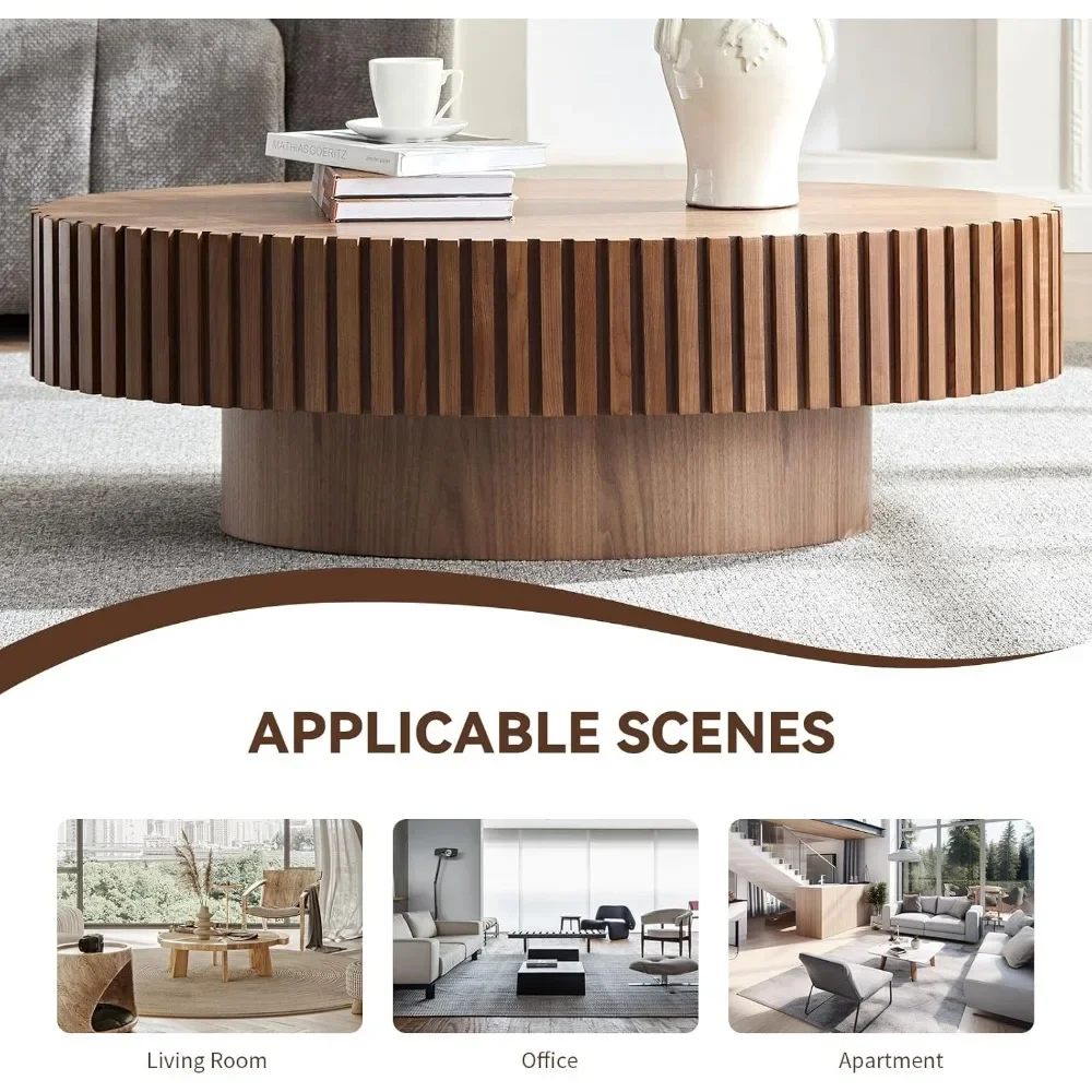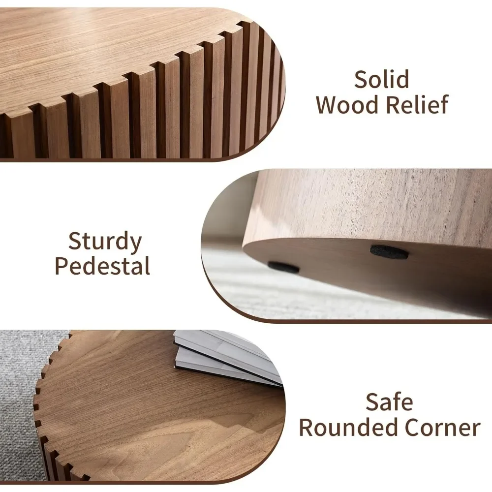 43.7″ Oval Coffee Table,Modern Handcraft Oval Drum Coffee Table with Solid Wood Relief Sturdy Pedestal for Living Room Apartment