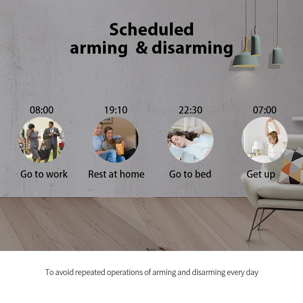 【Multiple Disarming Methods】: The system can be disarmed on-site using your fingerprint, the touch panel, or the provided remote tags. This offers flexibility and convenience in managing your home security.