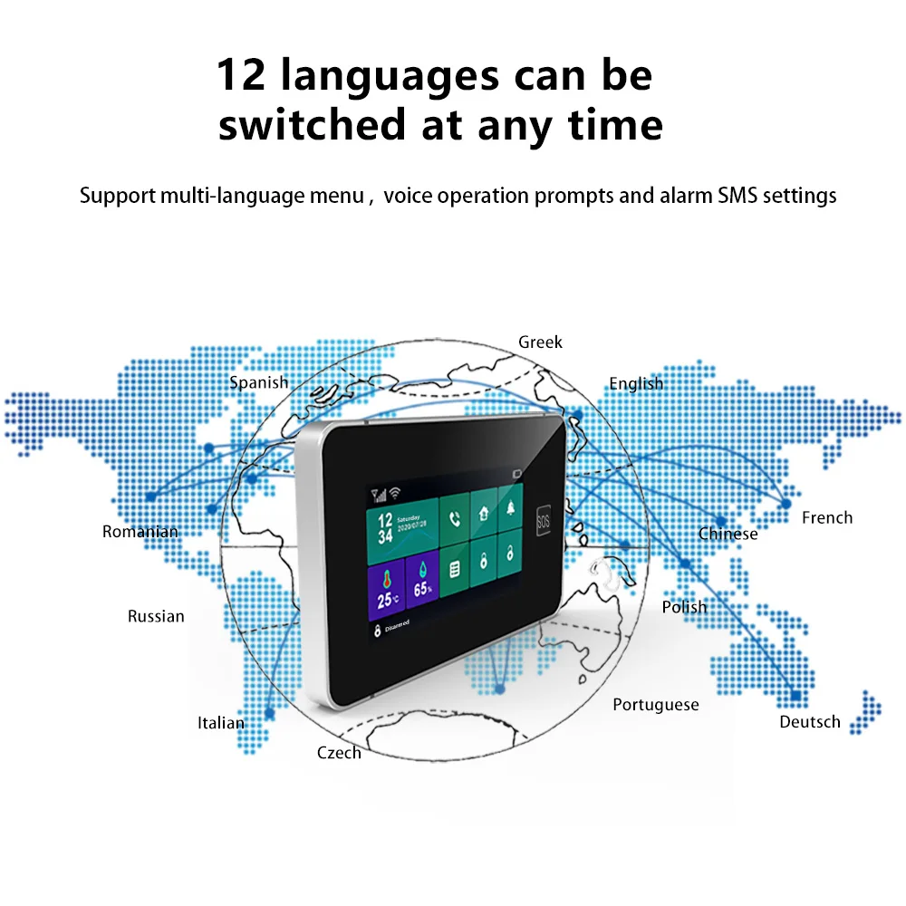 【Dual Network System】: This WIFI alarm kit utilizes a dual network system, combining Wi-Fi 802.11 b/g/n (2.4GHz) and cellular (GSM or 2G), ensuring a reliable and secure connection for your home security system.