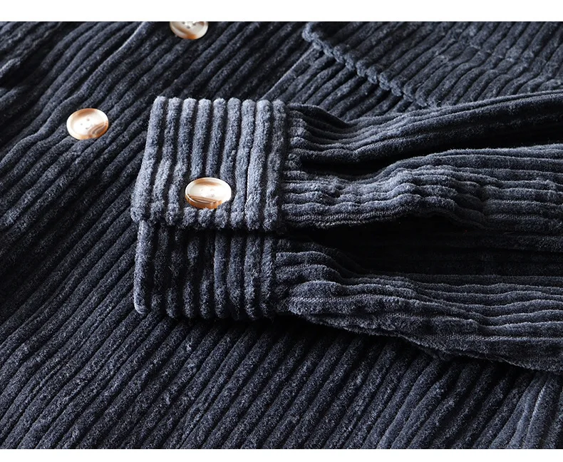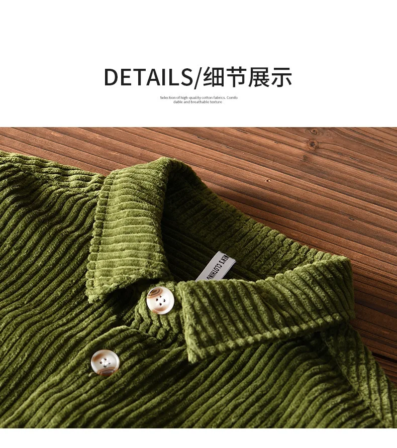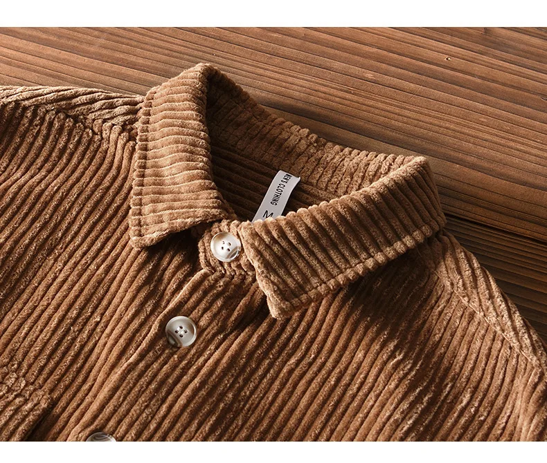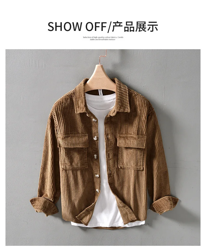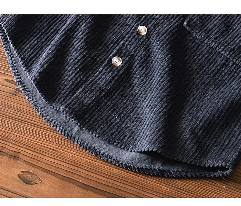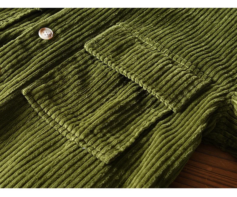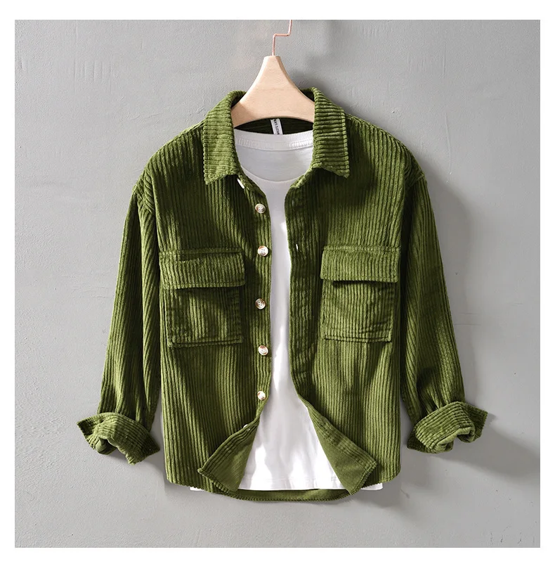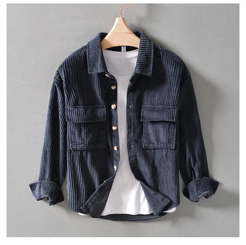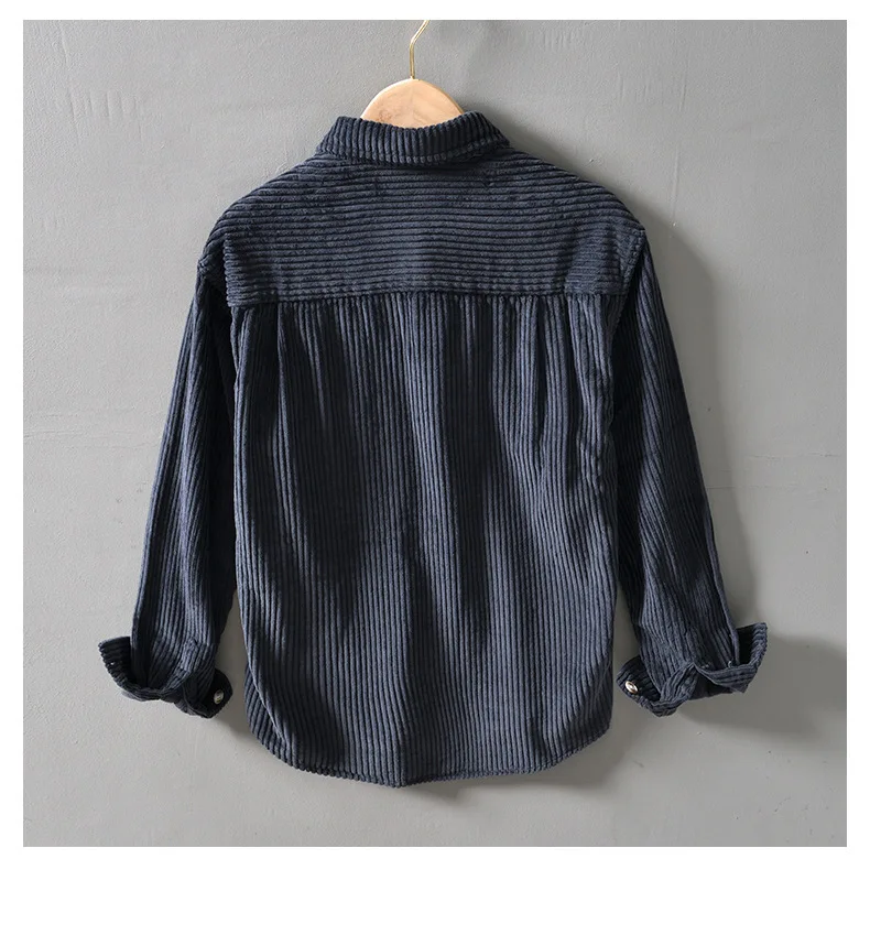#4409 Blue Khaki Green Corduroy Shirt Men Long Sleeve Cotton 100% Outerwear Vintage Shirt Pockets Buttons Cargo Shirt Male Loose