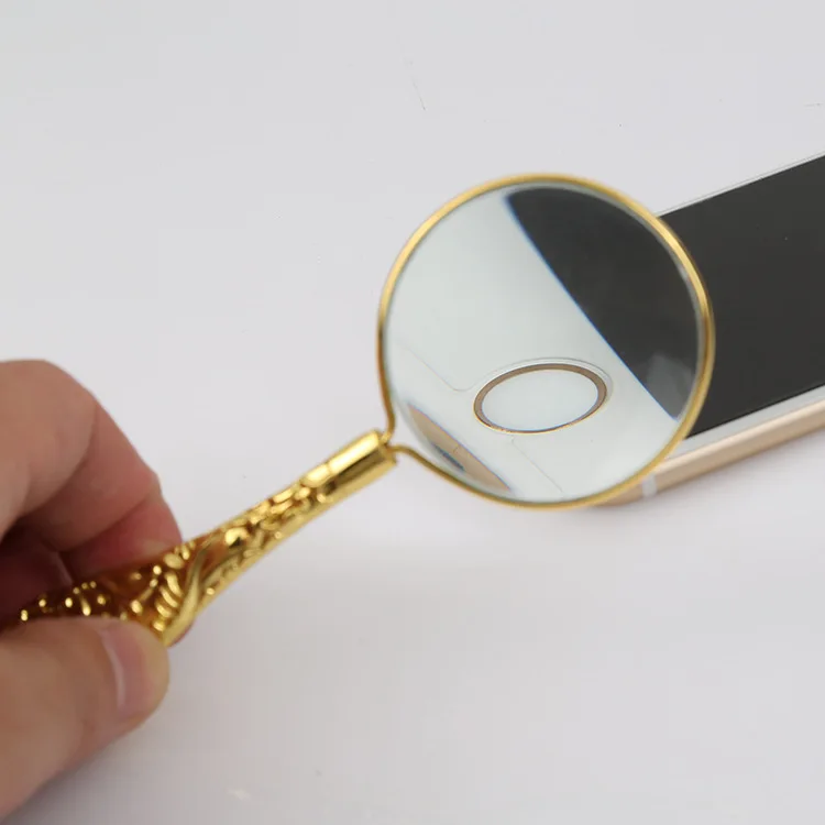 45Mm New European Delicate Pattern Handle Retro Glass Lens High-Grade Embossed Handle Reading Magnifying Glass for Reading Lupas