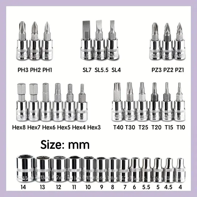 13* 1/4"" Hexagonal sleeve: 4-4.5-5-5.5-6-7-8-9-10-11-12-13-14mm