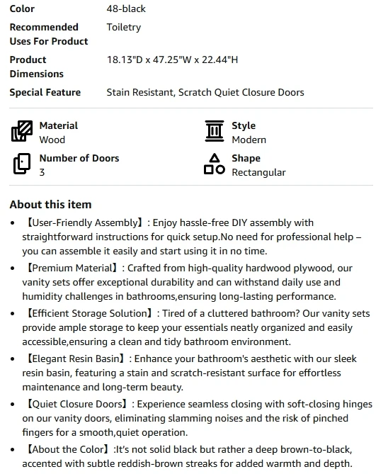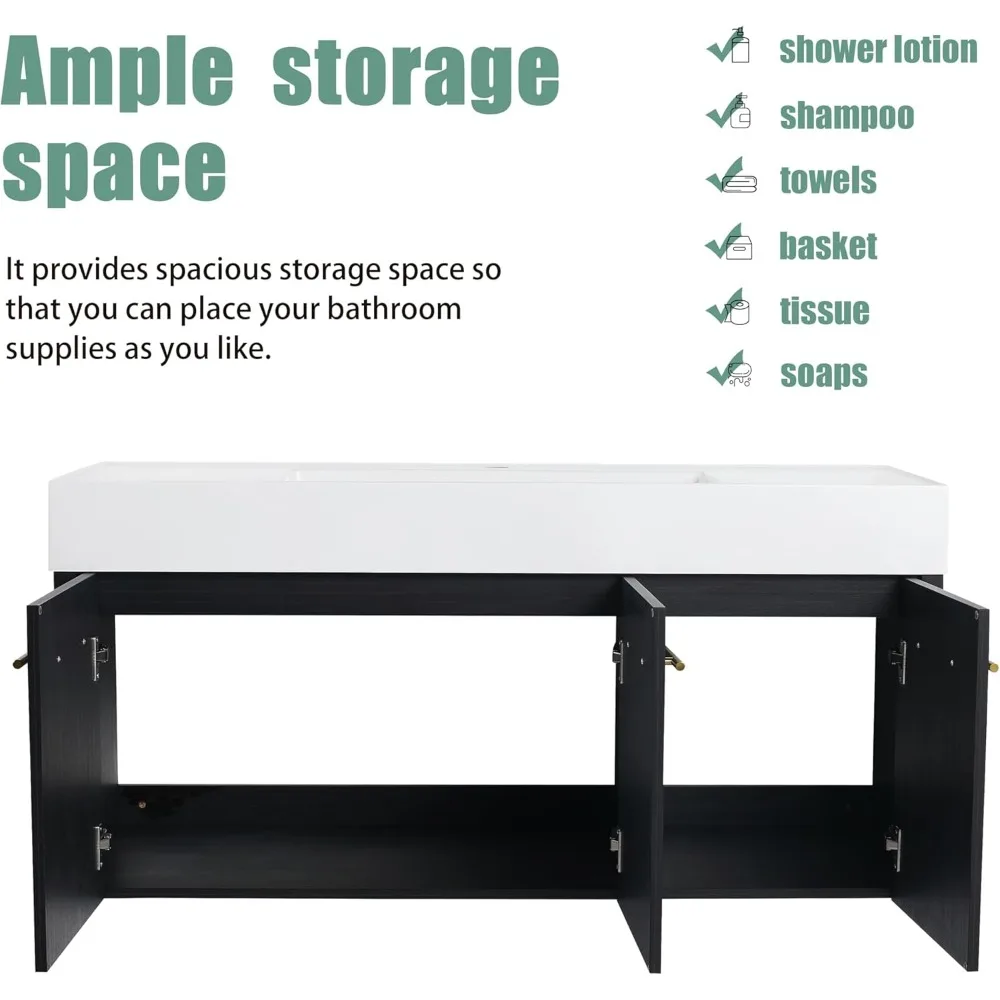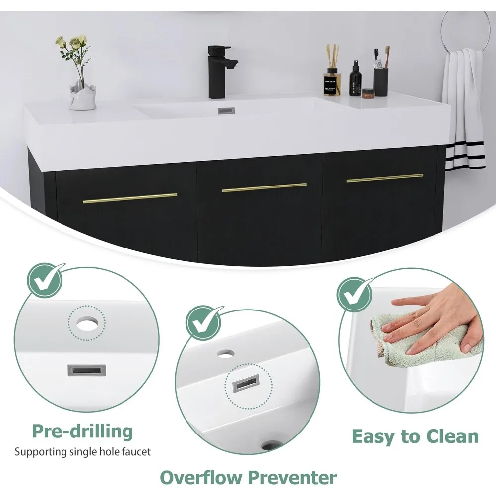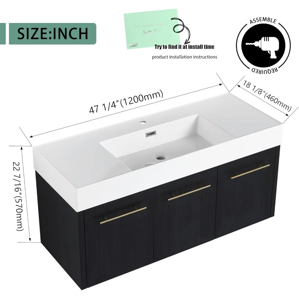 48In Floating Bathroom Vanity,48″” Bathroom Vanity with Sink,Modern Single Sink Bathroom Vanity Combo, Wall Mounted Cabinet Set