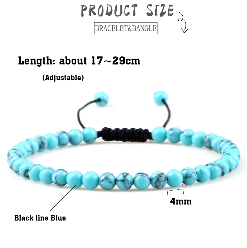 4mm Stone Beads Adjustable Bracelet For Men Natural Tiger Eye Lava Chalcedony Onyx Woven Bracelets Women Yoga Jewelry Pulseras