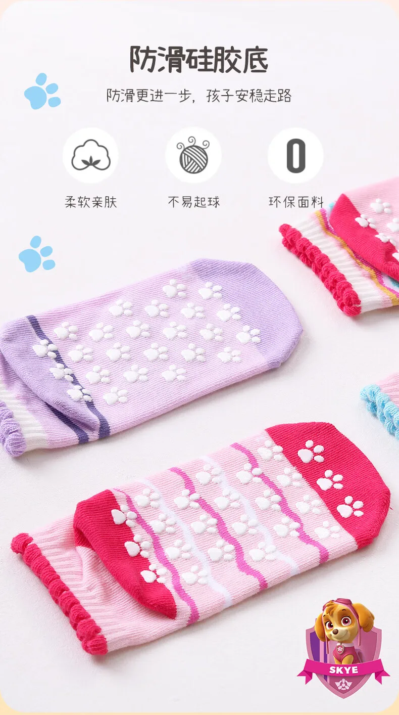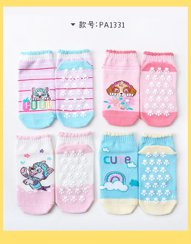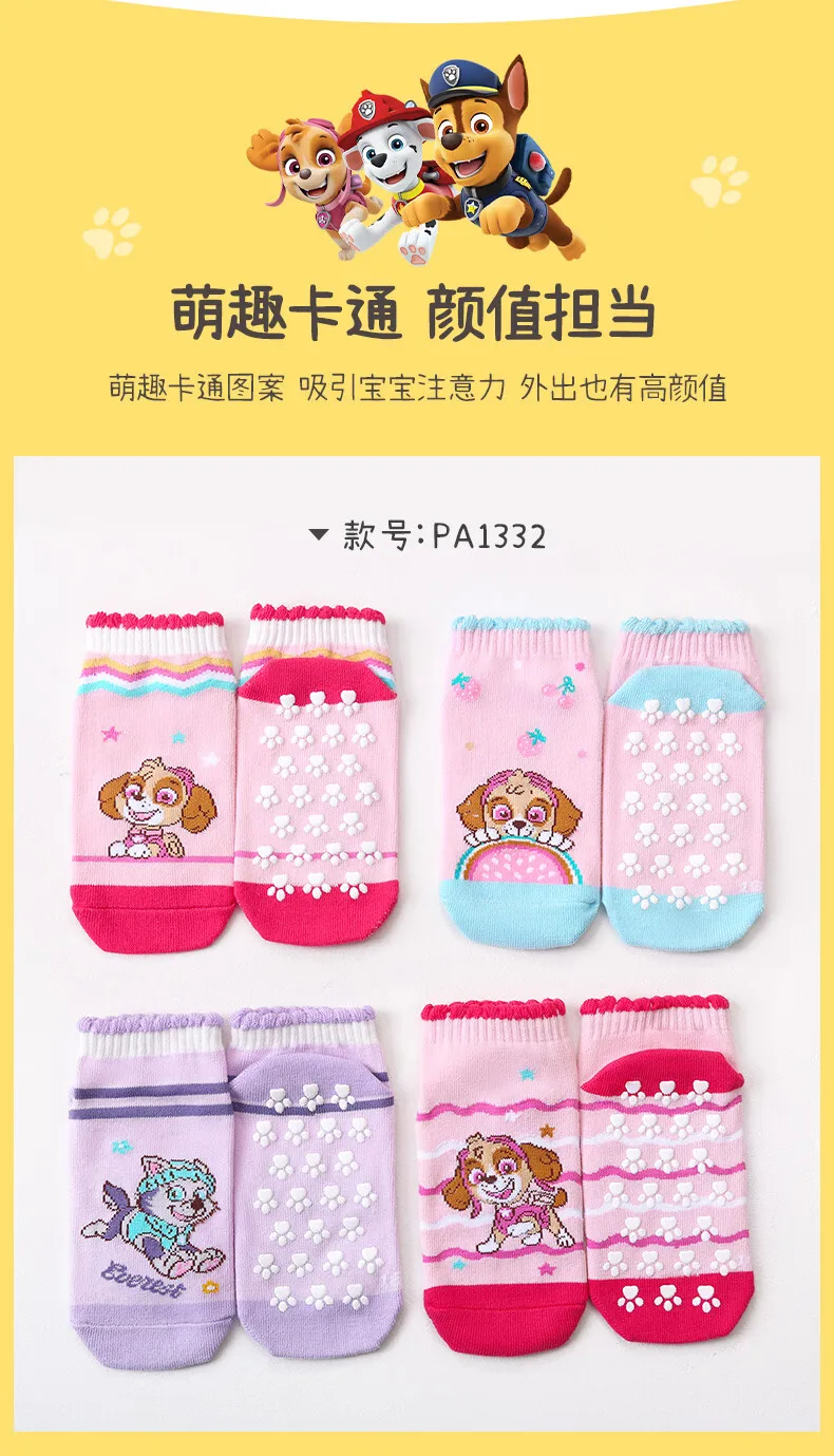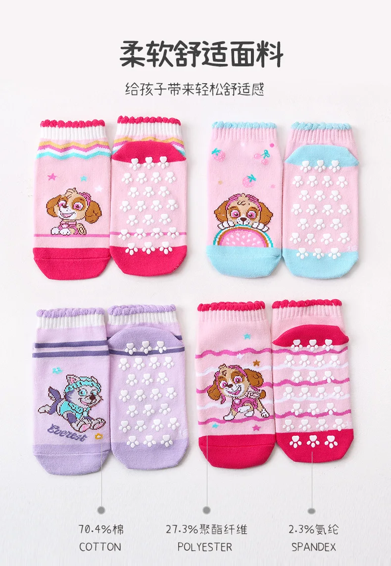 4Pairs Genuine Paw Patrol Children’s Anti-slip Boat Socks Boys Girl Cotton Floor Sock With Rubber Grips Four Season 2-6Years