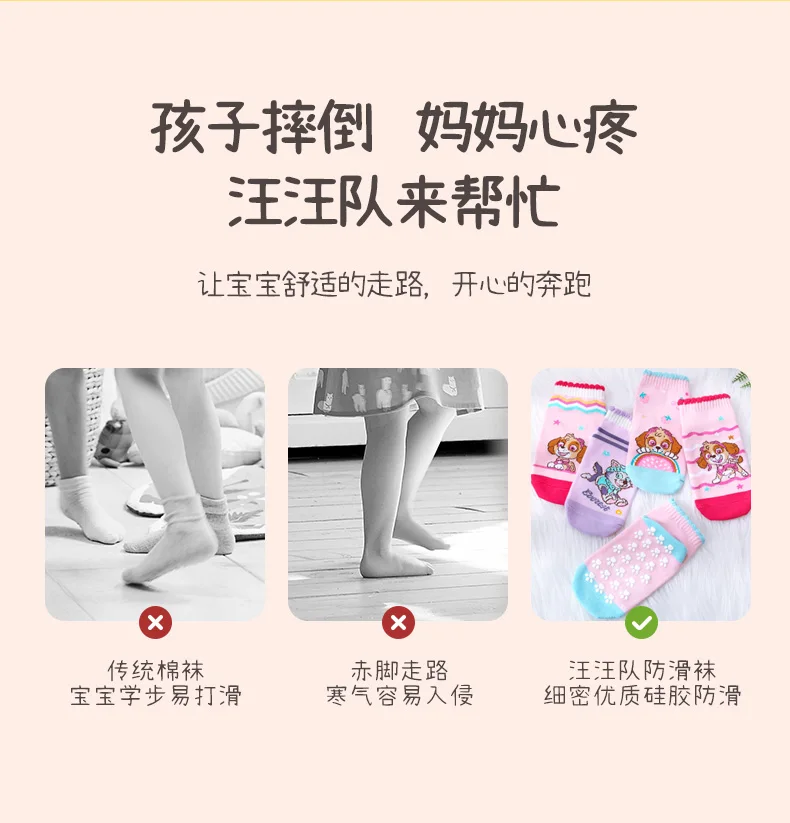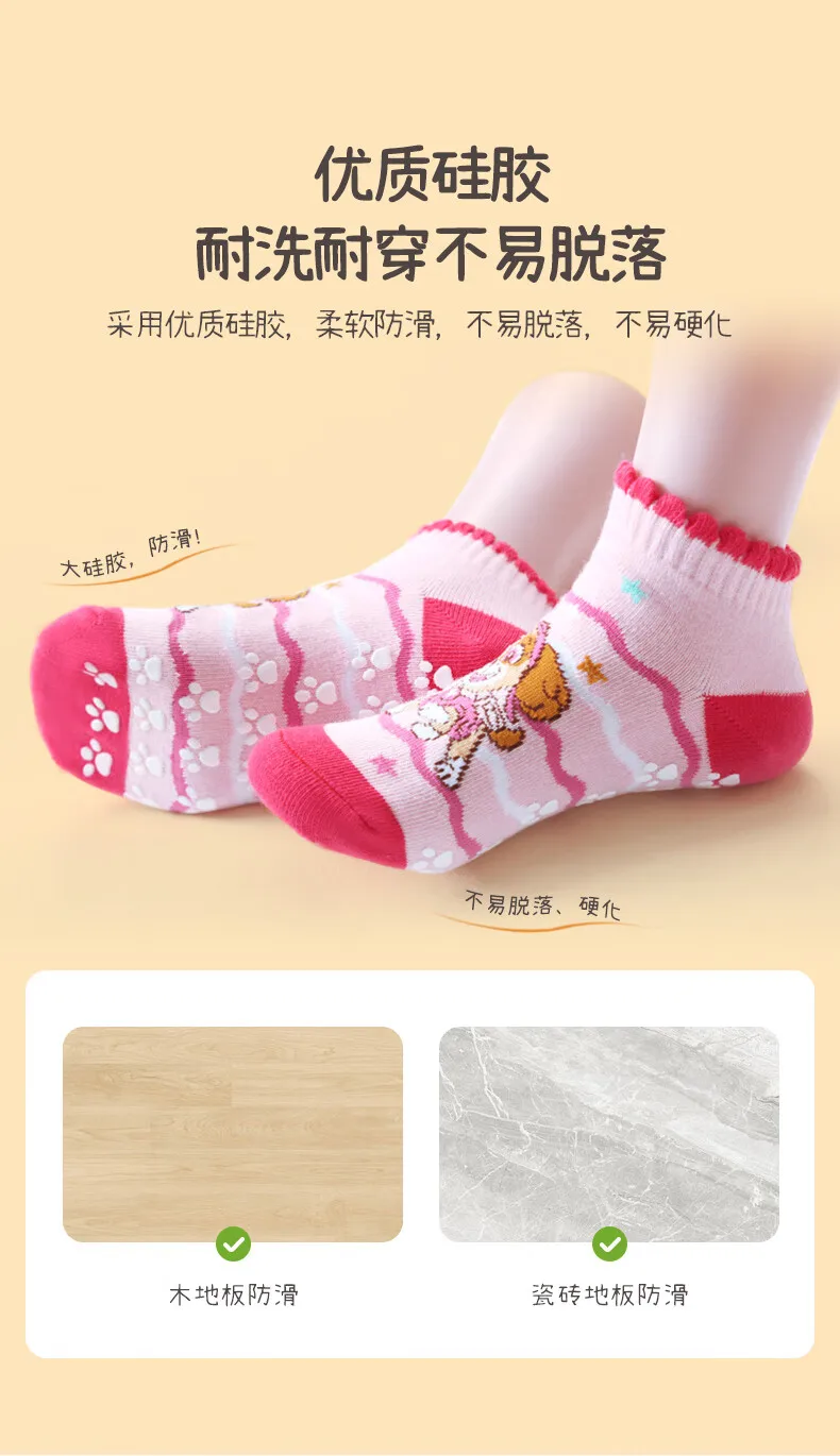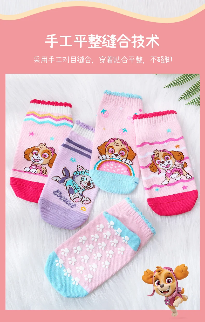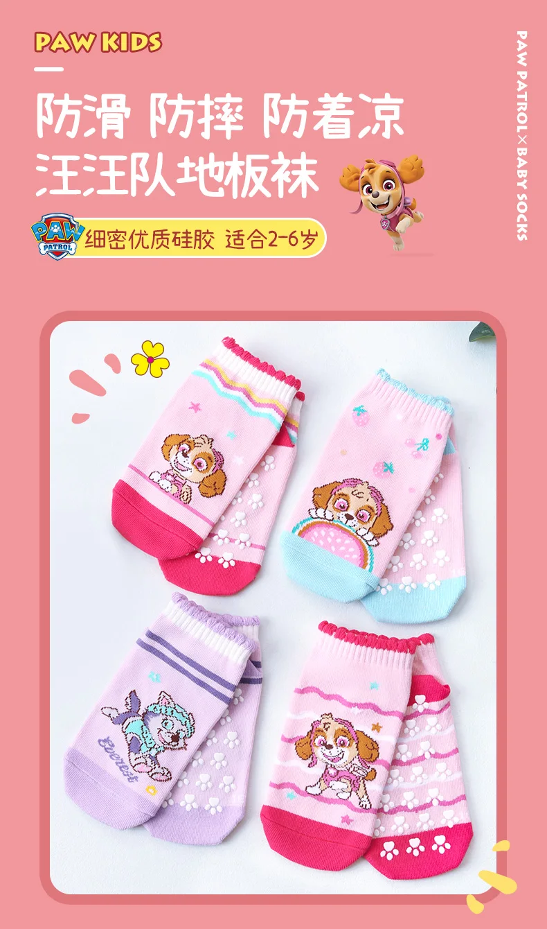 4Pairs Genuine Paw Patrol Children’s Anti-slip Boat Socks Boys Girl Cotton Floor Sock With Rubber Grips Four Season 2-6Years