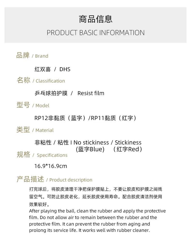 4pcs DHS Table Tennis Protective Film Protector Rubber Ping Pong Paddle Bat Set Accessories