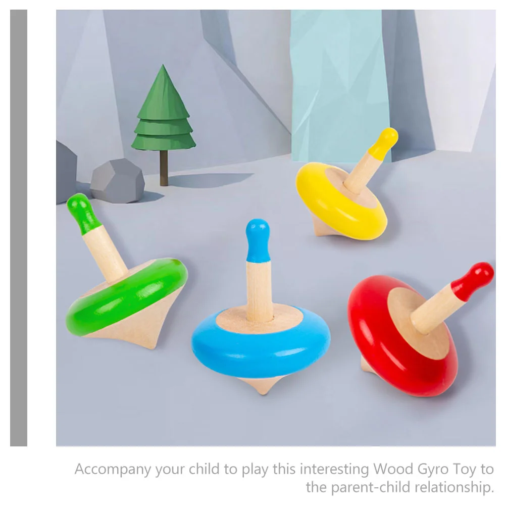 4Pcs Portable Gyro Toys Small Wood Gyros Kids Tops Toys Kids Educational Toys Children Gifts cartoon gyro toys