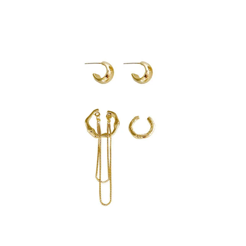 4PCS/Set Gold Color Tassel Non-Piercing Cuff Ear Clip Earring For Women Tassel Chains Clip Chain Fake Cartilage Piercing Jewelry