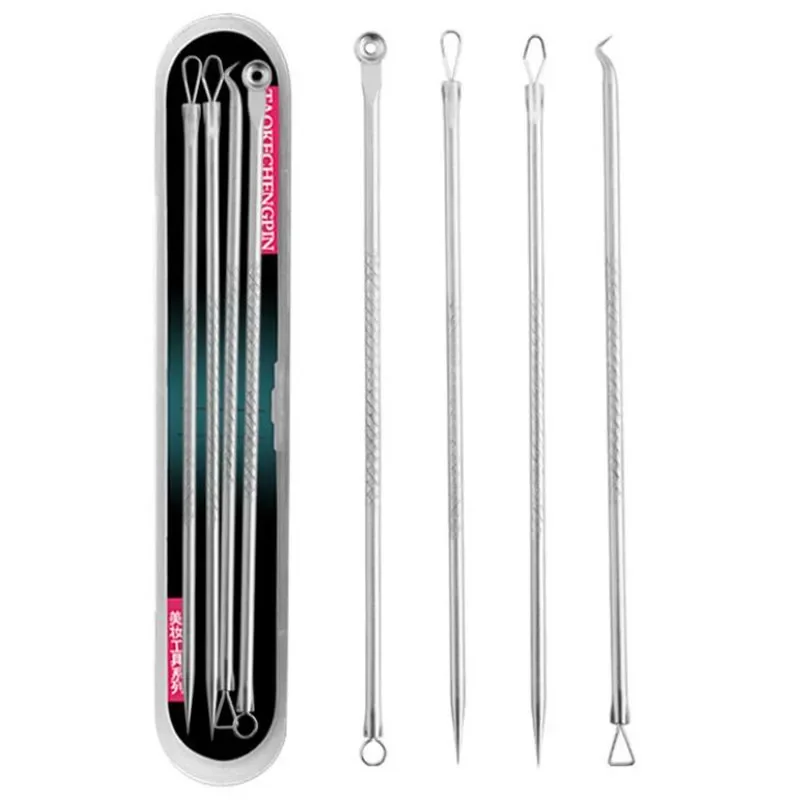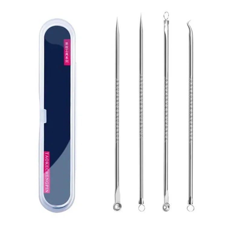 4pcs/Set Stainless Steel Blackhead Removal Kit Acne Blemish Pimple Extractor Remover Needles Cosmetic Face Cleaning Tool
