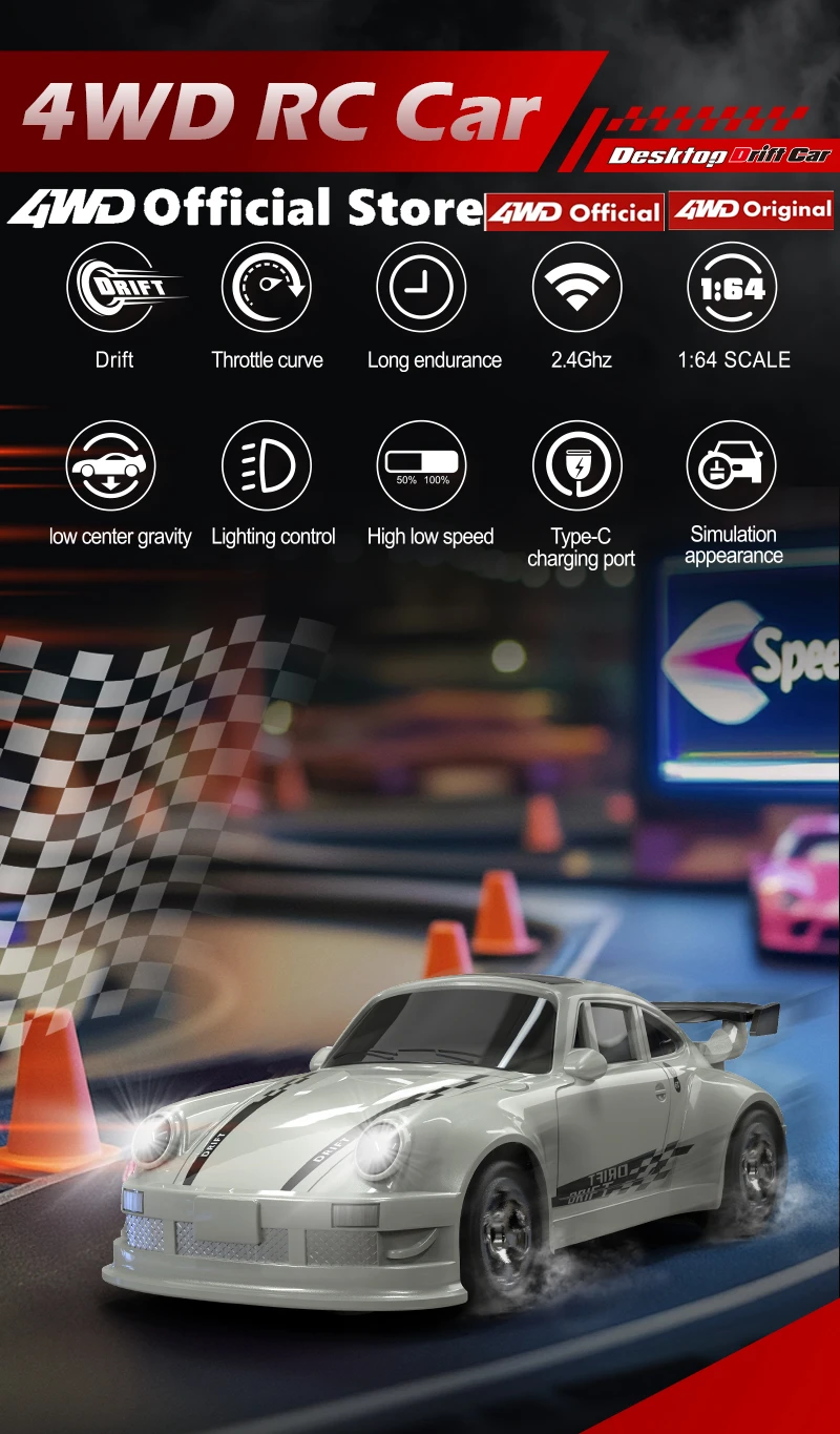 4WD 1/64 RC Car Remote Control Drift Racing 4X4 High Speed Vehicle with LED Lights 2.4G Radio Mini RTR Truck Gift Kid Adult Toy
