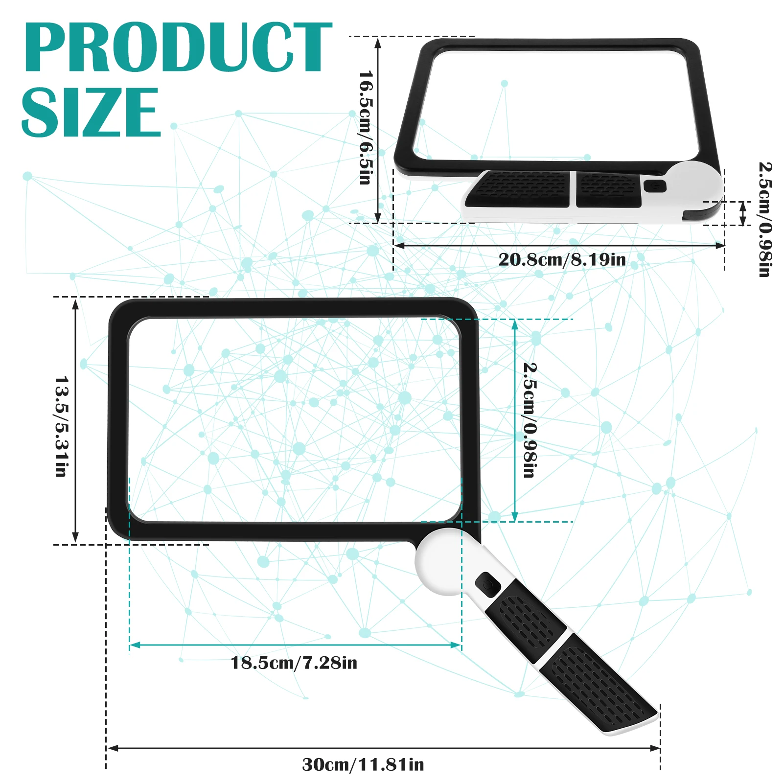 [Hands Free Magnifier with Stand] The magnifying glass is equipped with a heavy and non-slip base, which can keep the desk magnifying glass stable on any flat surface. You don't have to hold it all the time, free your hands. You can have a cup of coffee or sew and work long hours without worrying about wrist pain.