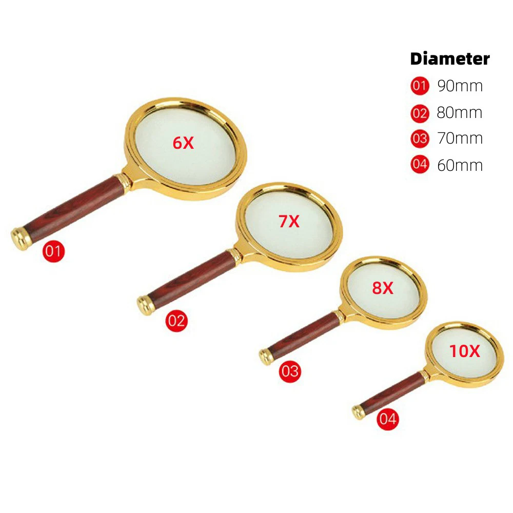 5-10X Handheld Magnifier Antique Mahogany Handle Magnifier Reading Magnifying Glass For Reading Book Inspection Coins Map