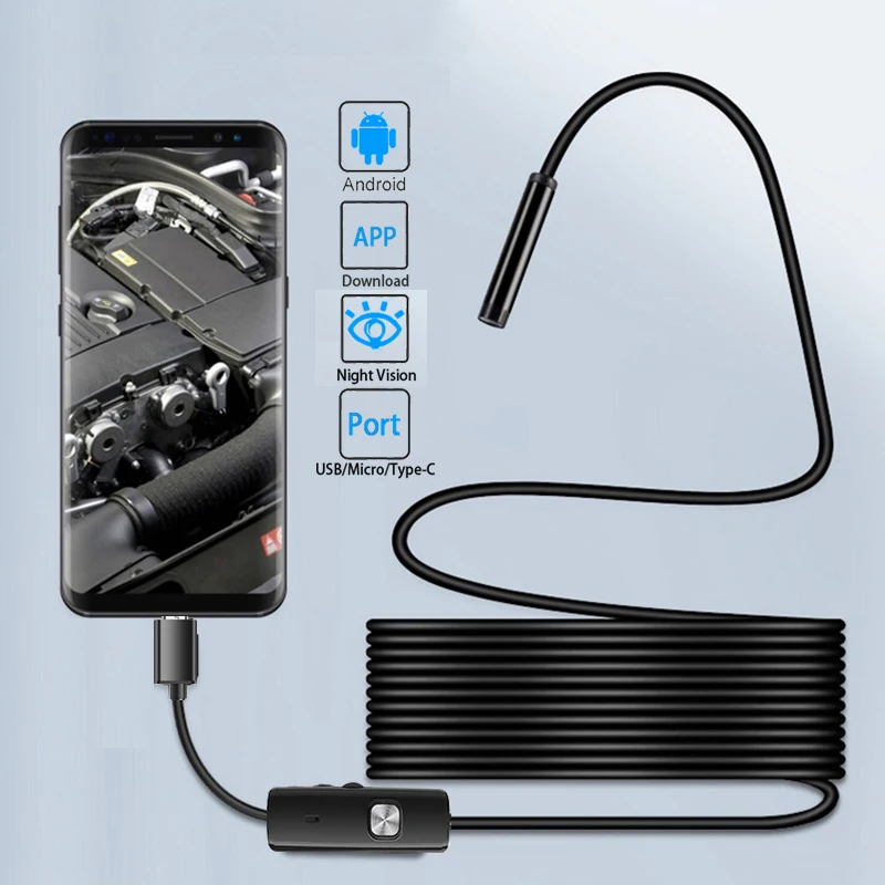 5.5mm Endoscope For Android Xiaomi Samsung Smartphone Car Pipe Automotive Boroscope Sewer Inspection Tools Endoscopy Camera Devi