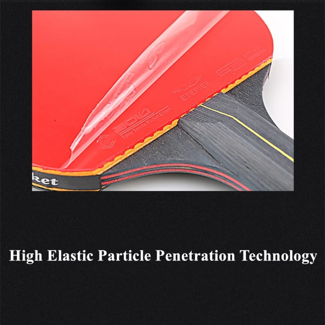 Rubber: Double Face Pimples-in Type Hard Rubber + High Energy Sponge.