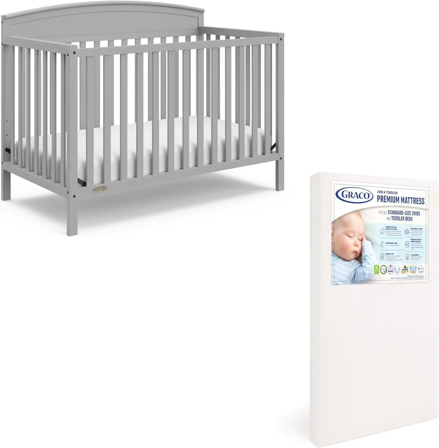 5 in 1 Convertible Crib with Premium Foam Crib and Toddler Mattress – Gray
