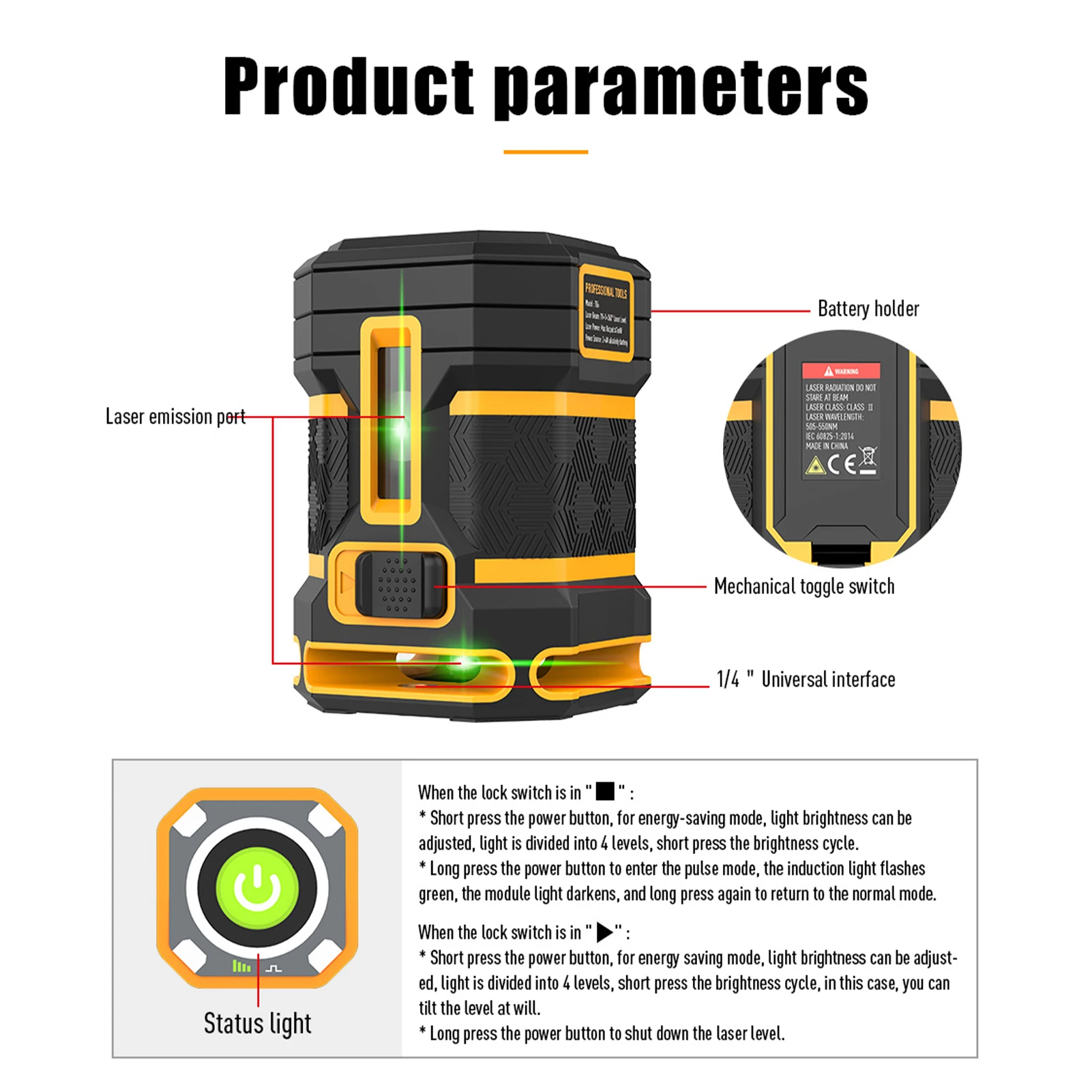 360° + Vertical Laser Line: 360° horizontal line, 1 vertical line output mode, suitable for a variety of places.