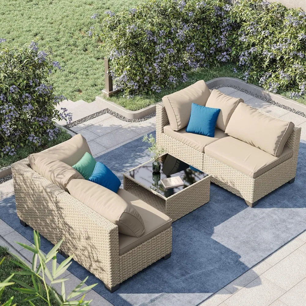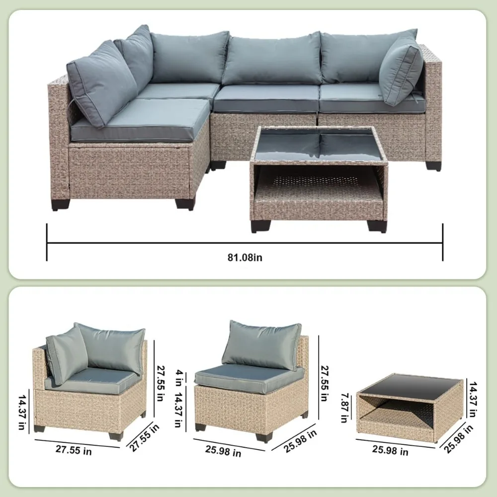 • 5-Piece Patio Furniture Set, Outdoor Conversation Set Sectional Sofa with Water Resistant Beige Thick Cushions and Storage Table